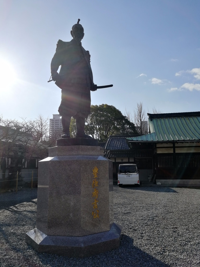 大阪城公园里的丰国神社,伫立着猴子的雕像