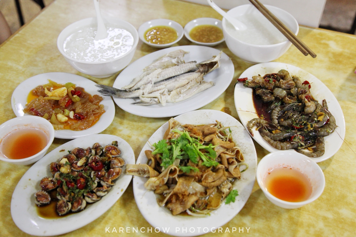 乍一听,喝粥,还是白粥或者番薯粥?似乎很寡味,但殊不知与之的配菜才是这一餐的重点,一碗白粥,配上五六个小菜便是最好的宵夜组合~