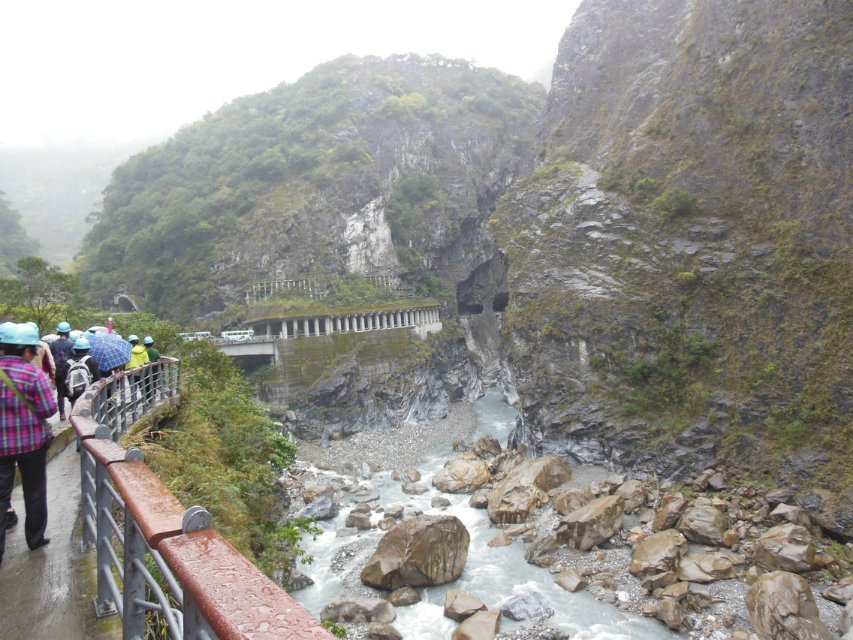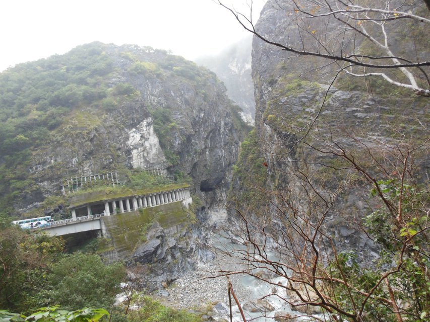 太鲁阁国家公园(Taroko National Park)是台湾第四座“国家公园”,位于台湾岛东部,地跨花莲县、台中县、南投县三个行政区。园内有台湾第一条东西横贯公路通过,称为中横公路系统。入台的400万国军干什么呢?喏——这条中横公路就是他们流血流汗建造而成。另外的国军去原始森林开荒种树,种地,大力发展农业,种植业,才有这么多水果。。。。