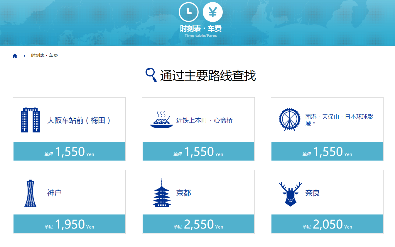 巴士还可以直接去大阪市区的各大商圈,包括梅田、心斋桥、难波等,也可以直接去奈良和京都,在网页上可以查询车次、车费、停靠站点、乘车指南等信息,非常方便。