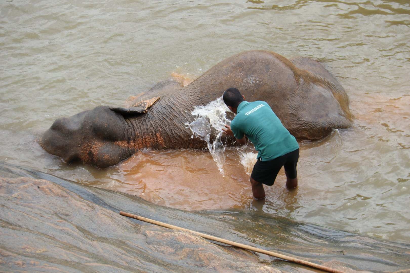 边用午餐边观赏大象洗澡,它们恣意嬉水,也使慵懒包围了我们。