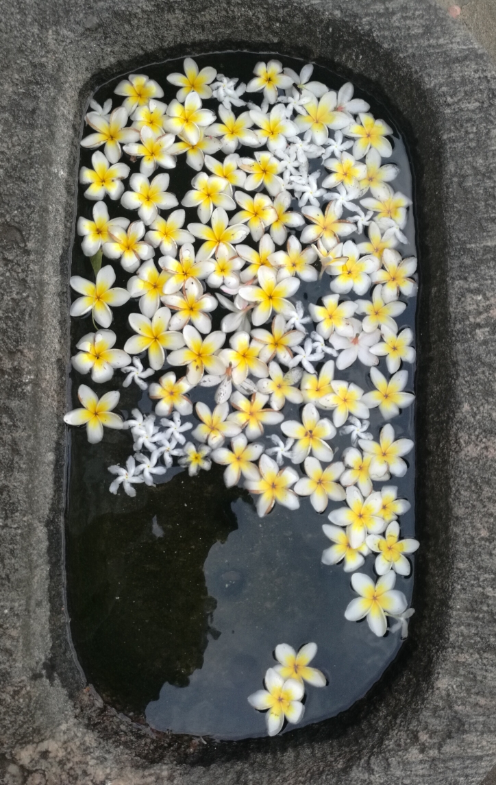 小池子中漂浮着些许鸡蛋花。