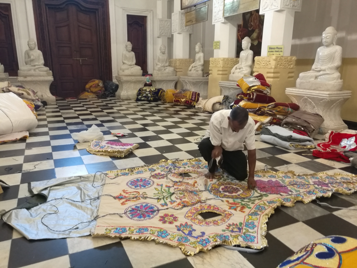 佛牙节前夕,工作人员正在赶制大象新衣。