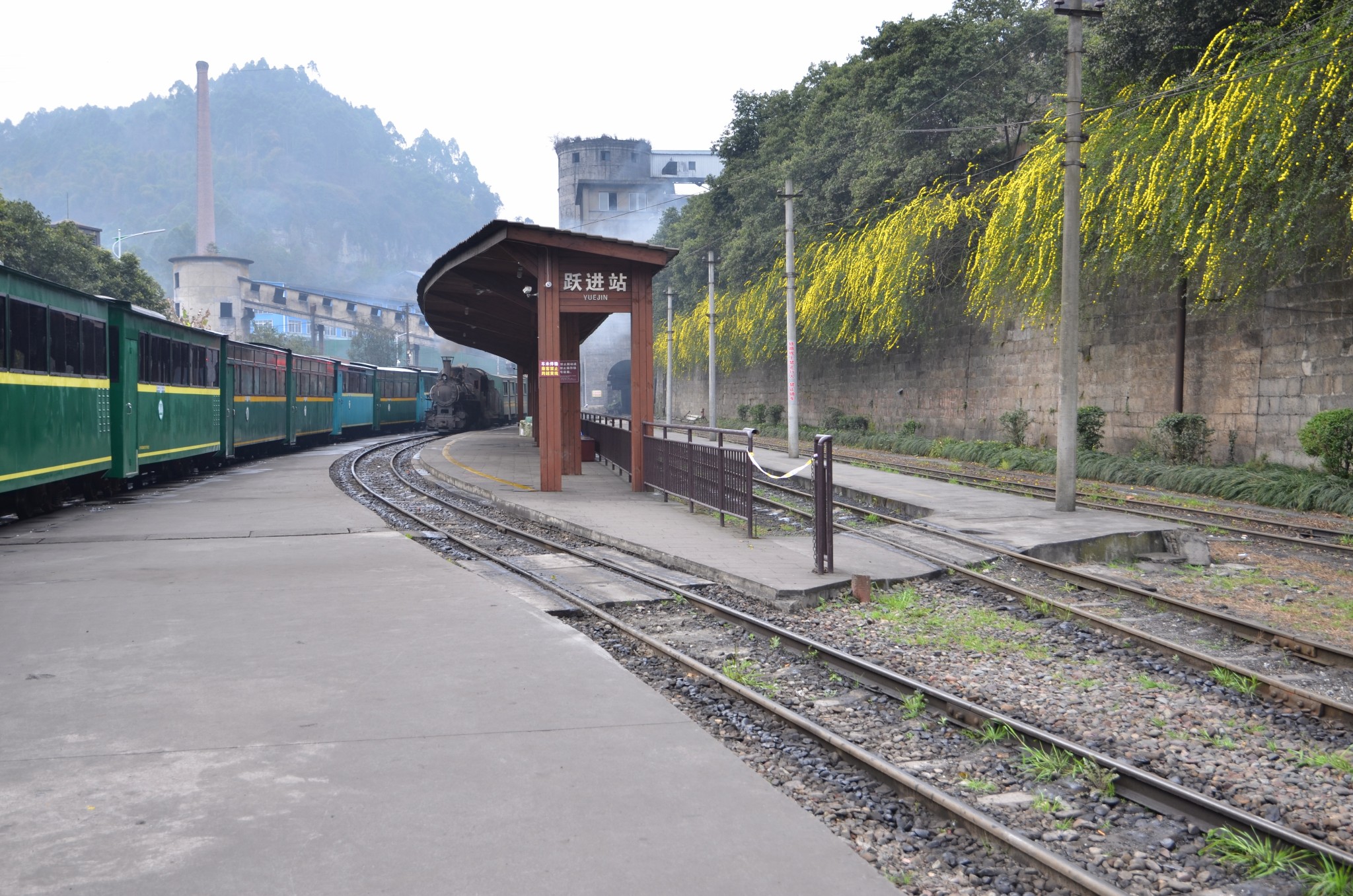 跃进站,因嘉阳第三口矿井——天锡井在此处,所以嘉阳人习惯称这里为三井。这里同时还是嘉阳集团公司总部、嘉阳矸石发电厂和嘉阳新的生活住宅区的所在地,2012年春节,嘉阳小火车旅游观光车的始发站搬迁到了这里,这里就成为了嘉阳国家矿山公园的首站。