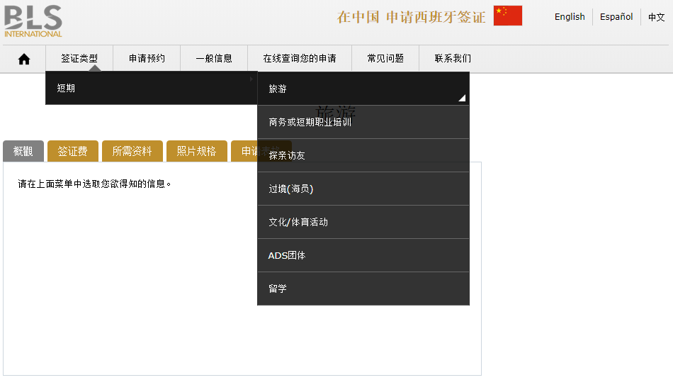 签证费用、所需材料、照片规格、申请表格这个页面都有非常详细的说明