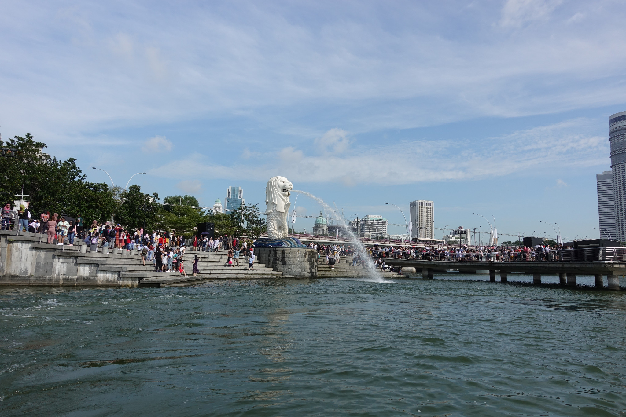 8:30就出发了,吃了前晚在便利店买的果汁和面包。之前淘宝上预定的9:30场次探索号鸭子船。打的士去的滨海湾广场,其实不远,7新币左右,可支付宝。下车找到7-11便利店,左拐进玻璃门,走到底换票完成,等鸭妈妈来领队坐船出发。第一次带小孩的都可以来坐一下,下水的瞬间有种小猪佩奇里有一集猪爸爸的汽车被导航带进开进河里的感觉。带讲解的,大致讲解了一下新加坡的历史,各个景点的介绍。
