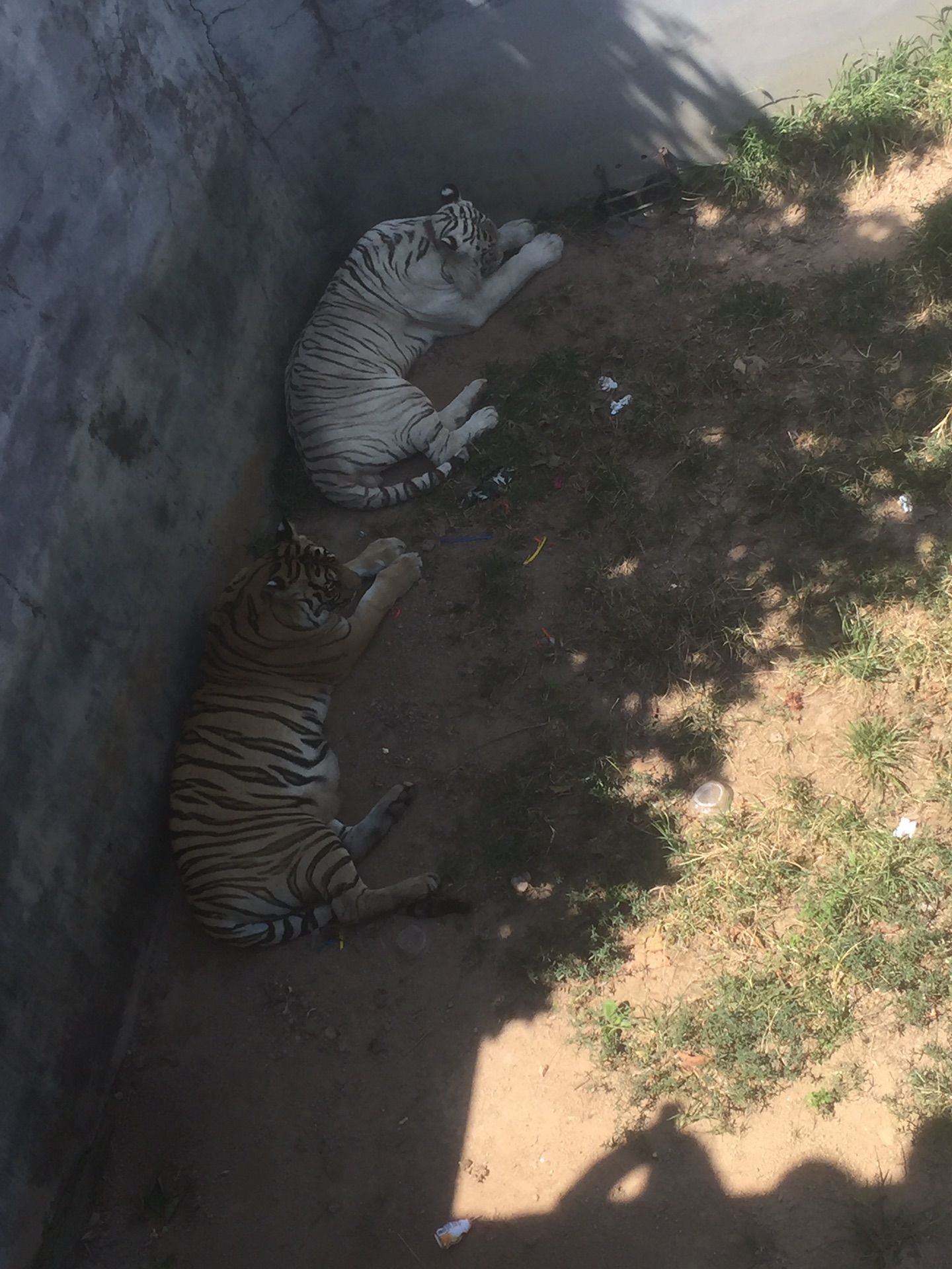 第一站威海西霞口神雕山野生动物园,孩子一直期望能看到真正的大象、老虎、大熊猫,威海的动物园的确不错。动物种类全、园区大,我们去的时候正好气温不高,走路、爬山虽然多,但愉快的心情掩盖了疲惫,走走看看根本不觉得累,在与各种动物亲密接触中不知不觉3个多小时时间过得太快,孩子们玩得很高兴!