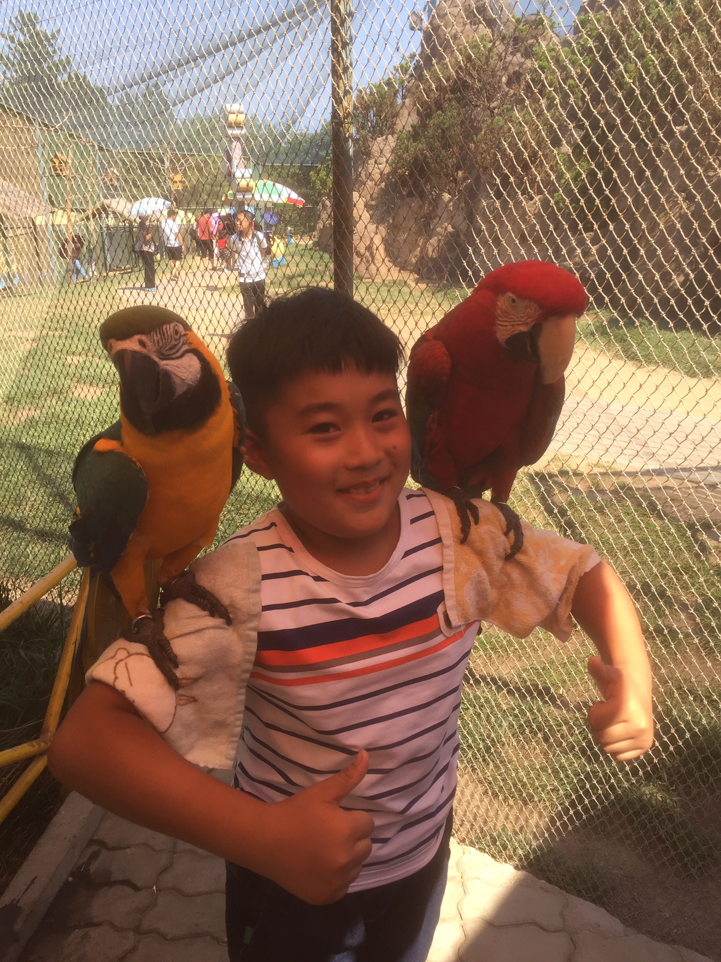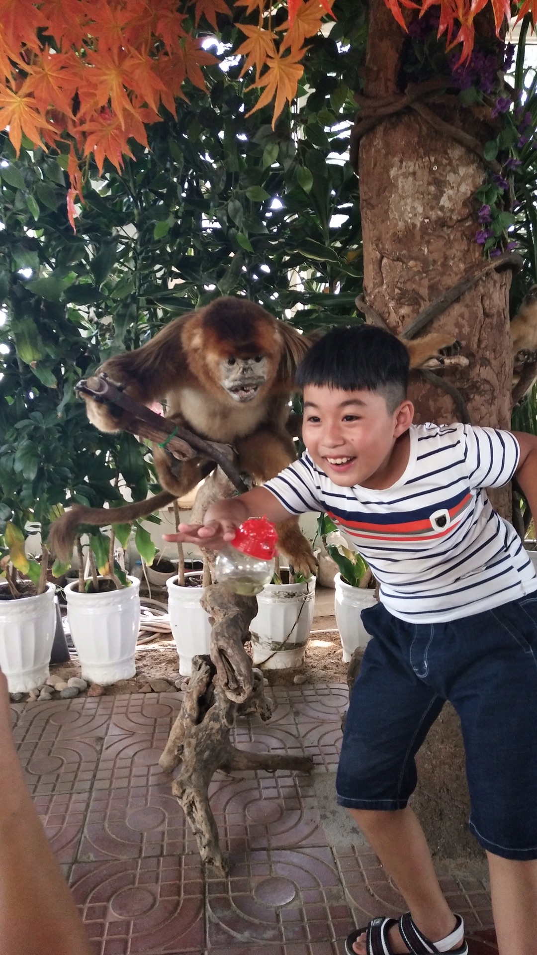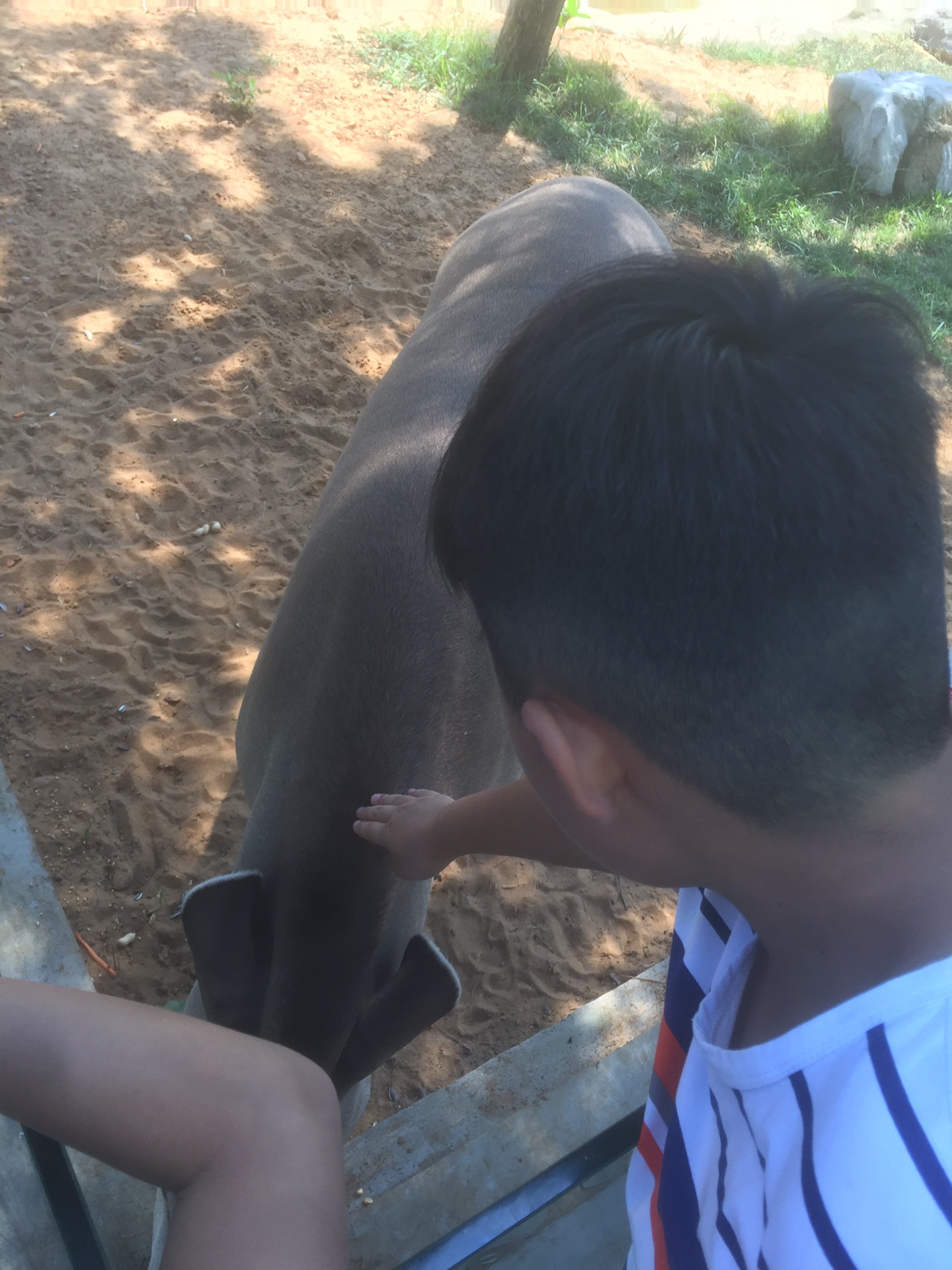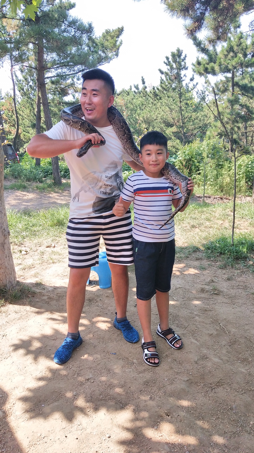 什么都是第一次!第一次看到这么多种类的动物,第一次各种动物亲密。虽然自己曾经被毒蛇咬伤过,心有余悸,但是为了锻炼孩子的胆量、历练他的各种经历,以身试法带他和蟒蛇接触合影,儿子也是经过好一番鼓励才敢用手摸蛇,从一开始的胆怯不敢靠近到自己主动接触,慢慢的对它已经不再那么恐惧,这种经历对孩子来说很有意义,让他明白:凭空想象是解决不了问题,只有尝试和挑战才能不断改变自我!