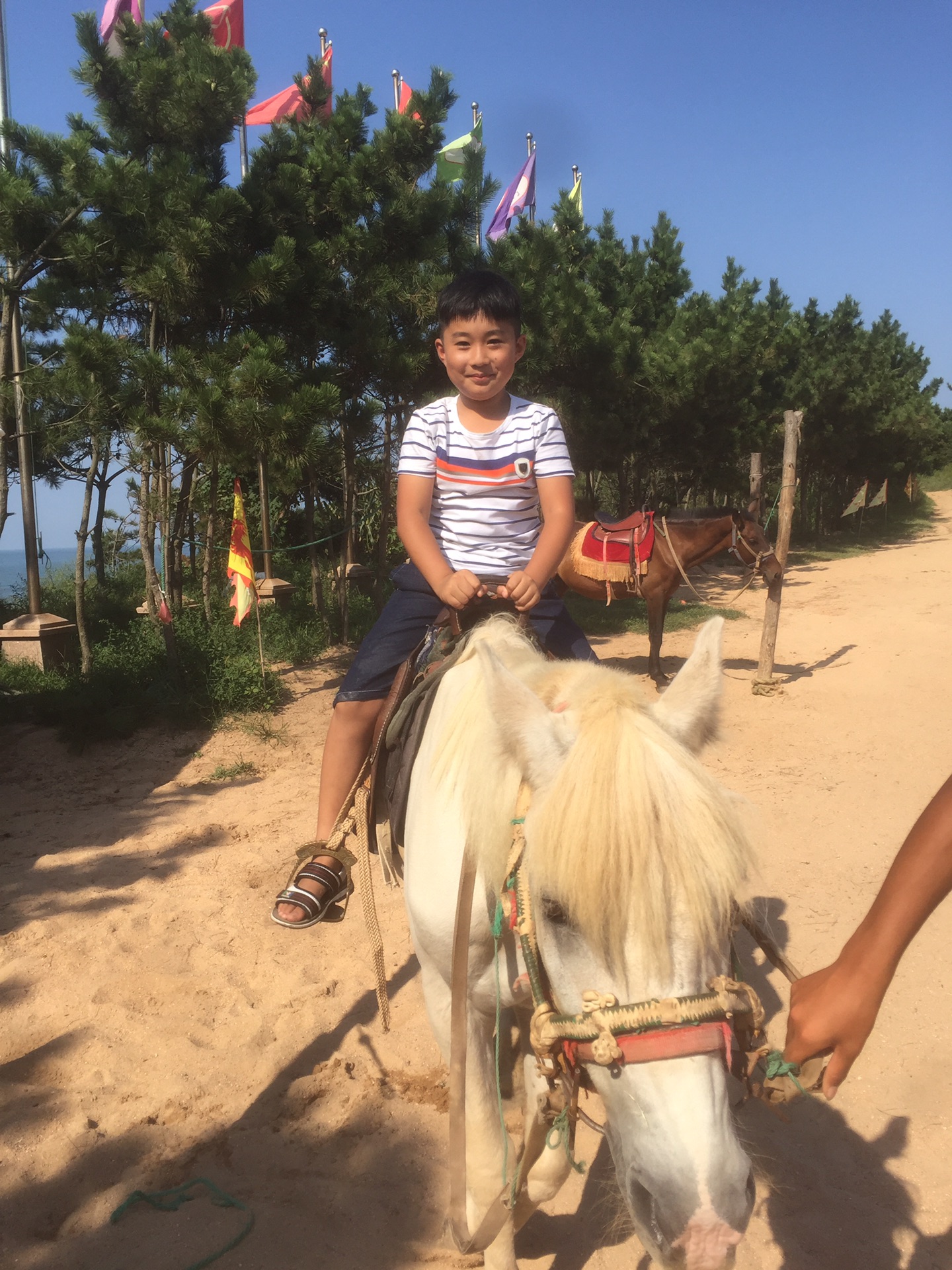 ,经过蟒蛇的一关,骑马是儿子主动要求的,那自然是必须要满足的!而且我也要过过瘾!