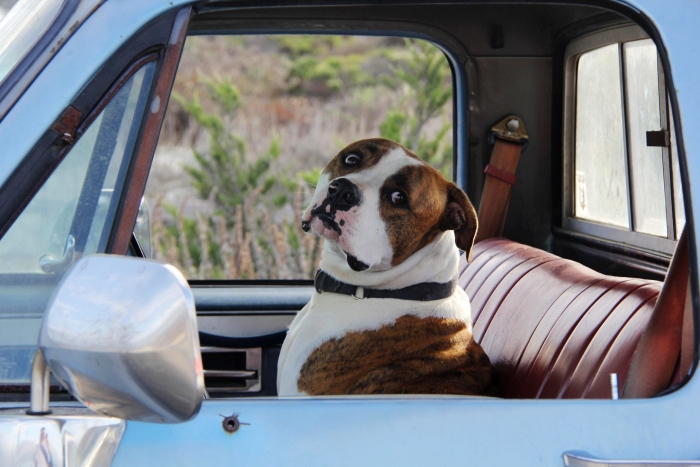 发现了一条非常有趣的大狗,被主人丢在车上,很无助的样子