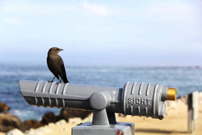 站在望远镜上的海鸟