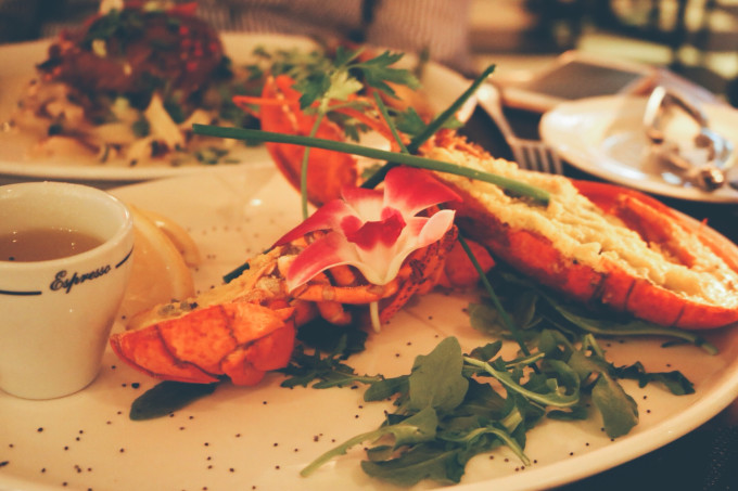 作为两个吃海鲜长大的孩子,我们不免俗的要了两个龙虾,结果因为和主菜一起上,而我们忙着吃自己的那一盘,吃完发现没有胃了,就只能让服务员打包带走回Airbnb当宵夜了。