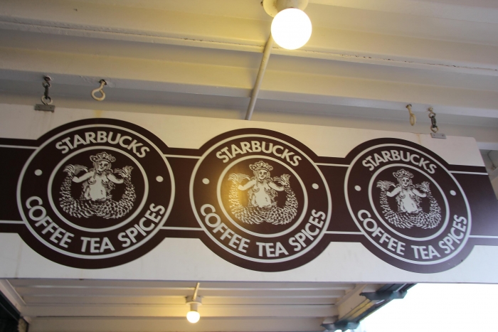 然后到了派克市场上的星巴克第一店,还保留着最原始的图标
