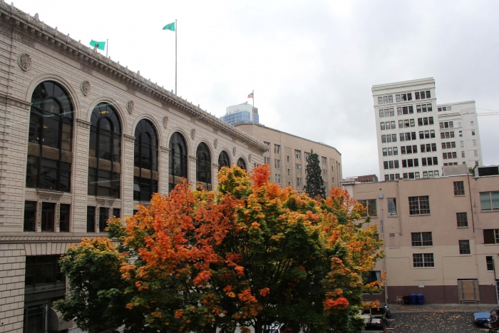 没想到屁股都没做热和就到了,也就2分钟吧,沿途拍了张西雅图的城市景色,枫树很多