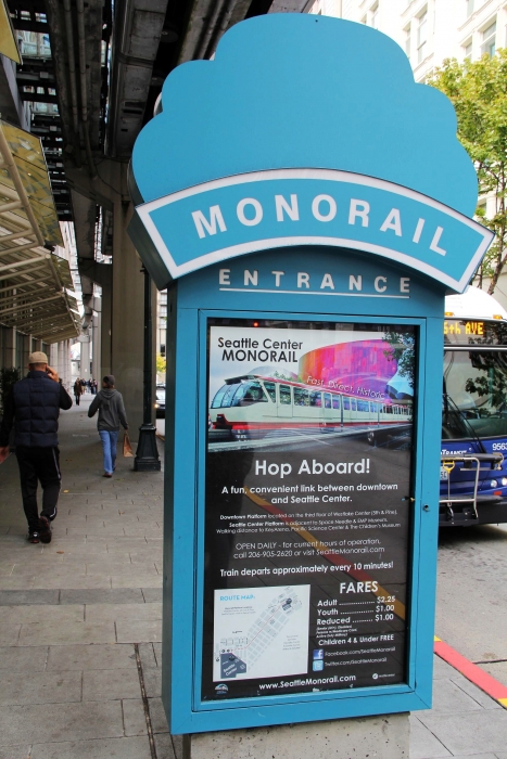 然后坐了西雅图市区的游览车(Monorail)返回West Lake,每人2.25美金。