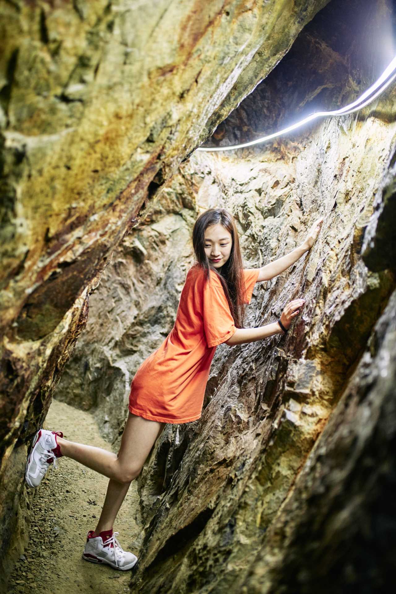 要是你在胖一点,估计你都可能过不去,弯弯曲曲的矿道内有的部分可是要考研你体型的,女神这身材就***不说了,不过也正是这些,给整个矿道增色不少。