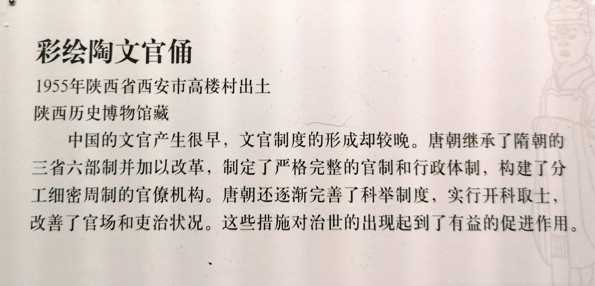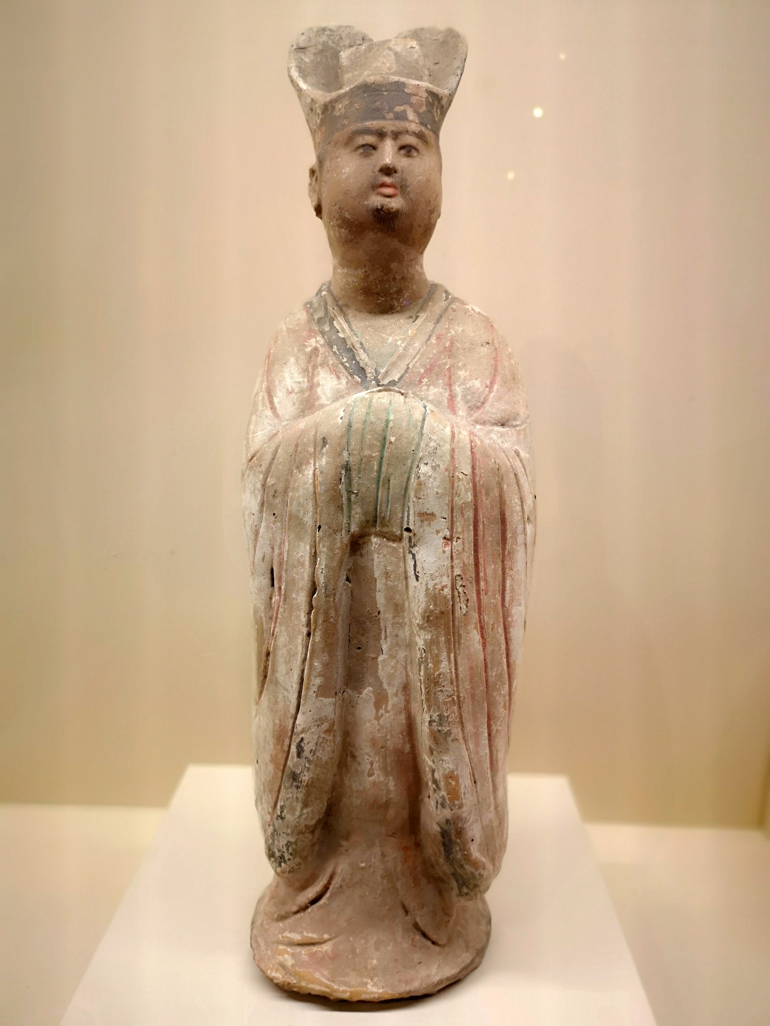 彩绘陶文官俑,1955年陕西省西安市高楼村出土,陕西历史博物馆藏。