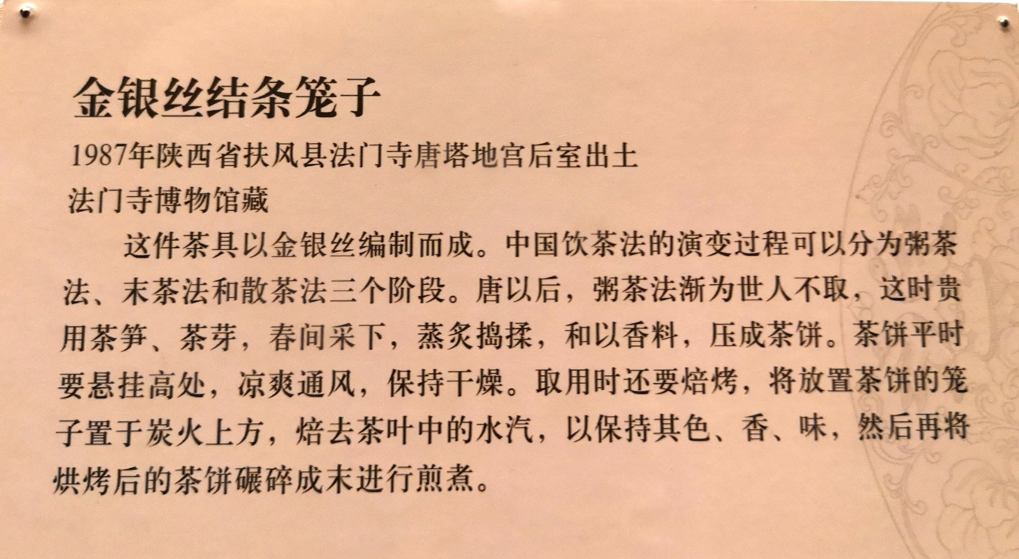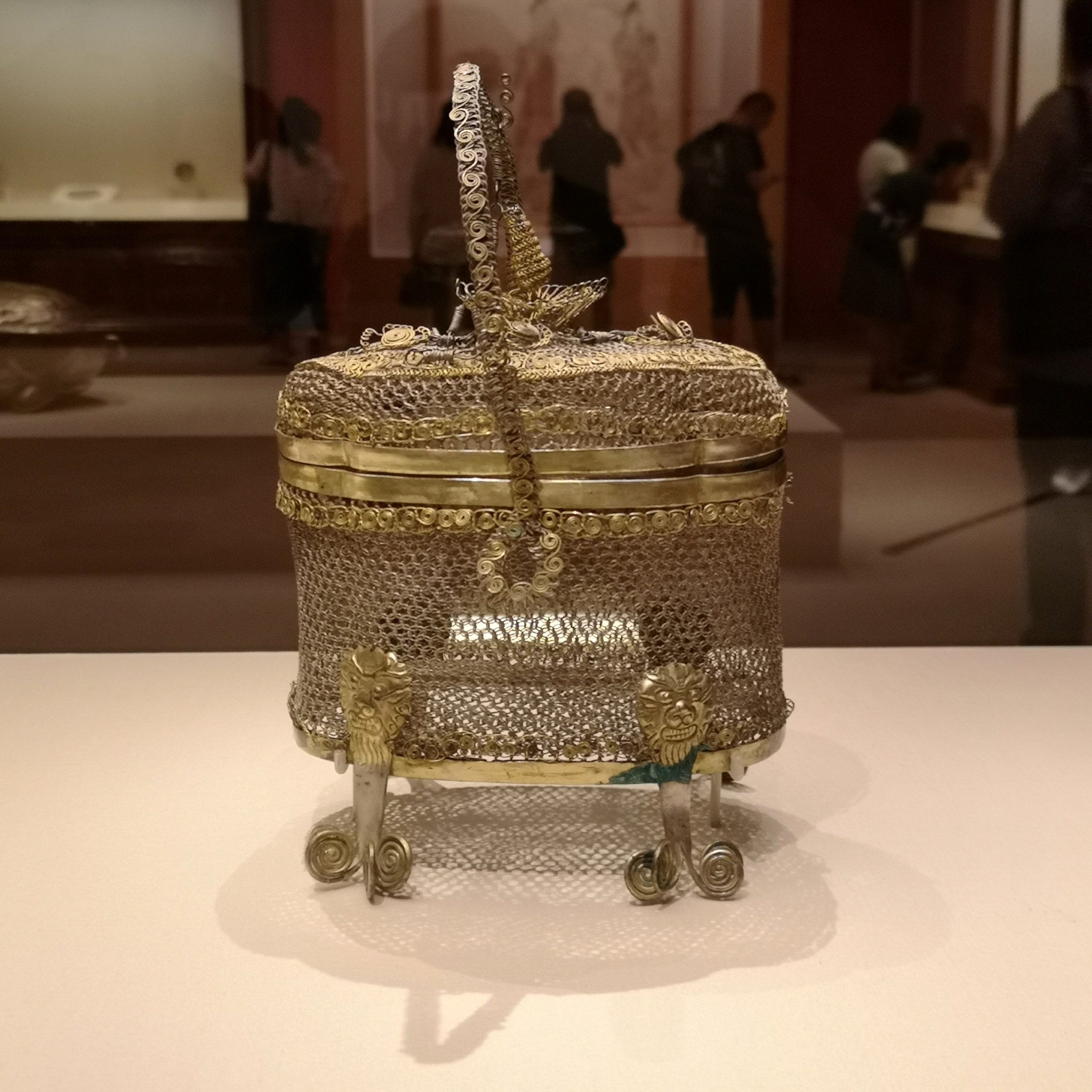 金银丝结条笼子,1987年陕西省扶风县法门寺唐塔地宫后室出土,法门寺博物馆藏。