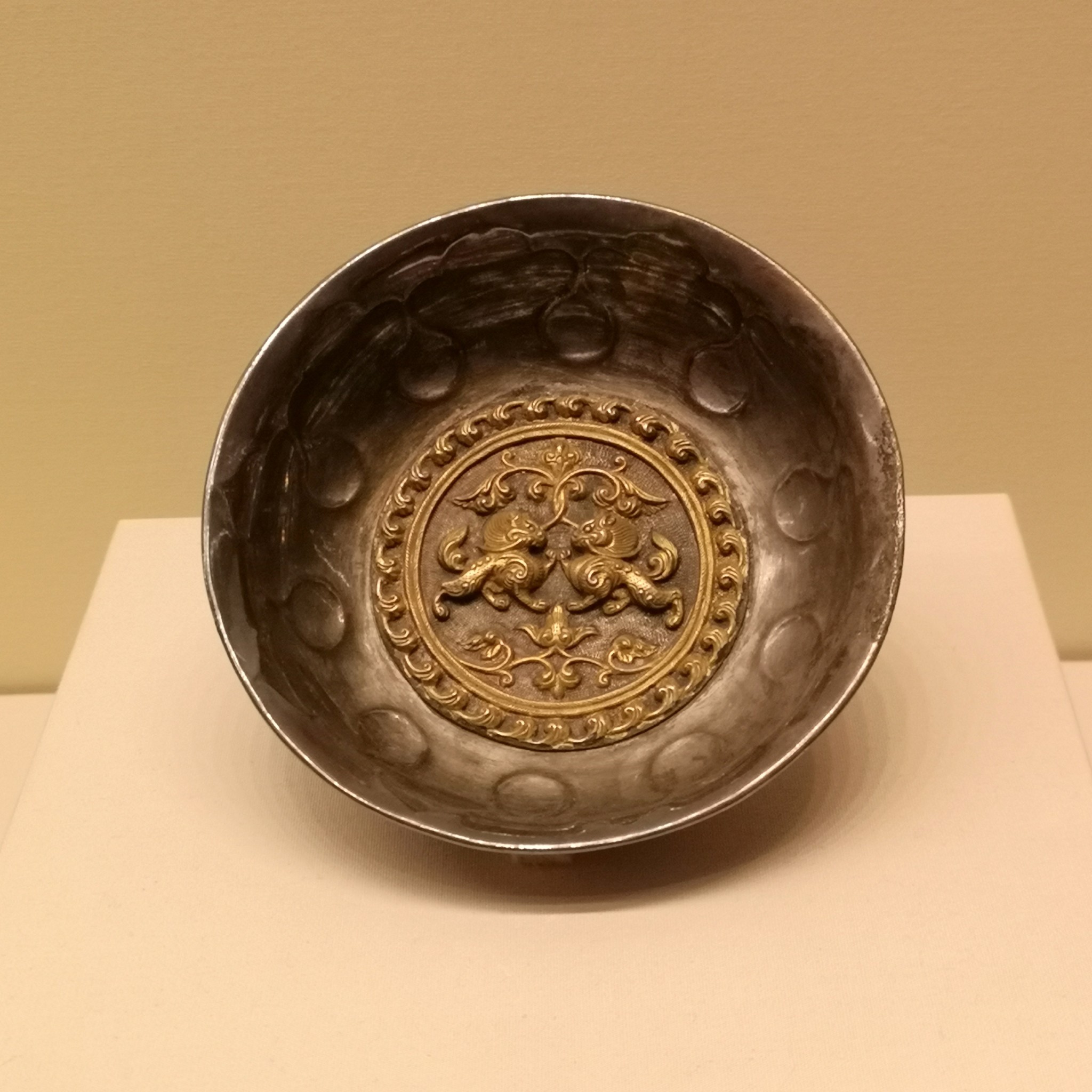 双狮纹银碗,1970年陕西省西安市何家村窖藏出土,陕西历史博物馆藏
