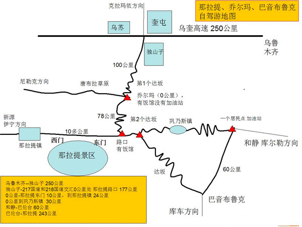 5、如果当天无法到达巴音布鲁克的,可在库尔勒,焉耆,和静或那拉提住宿一晚,第二天再包车或坐班线车到达巴音布鲁克