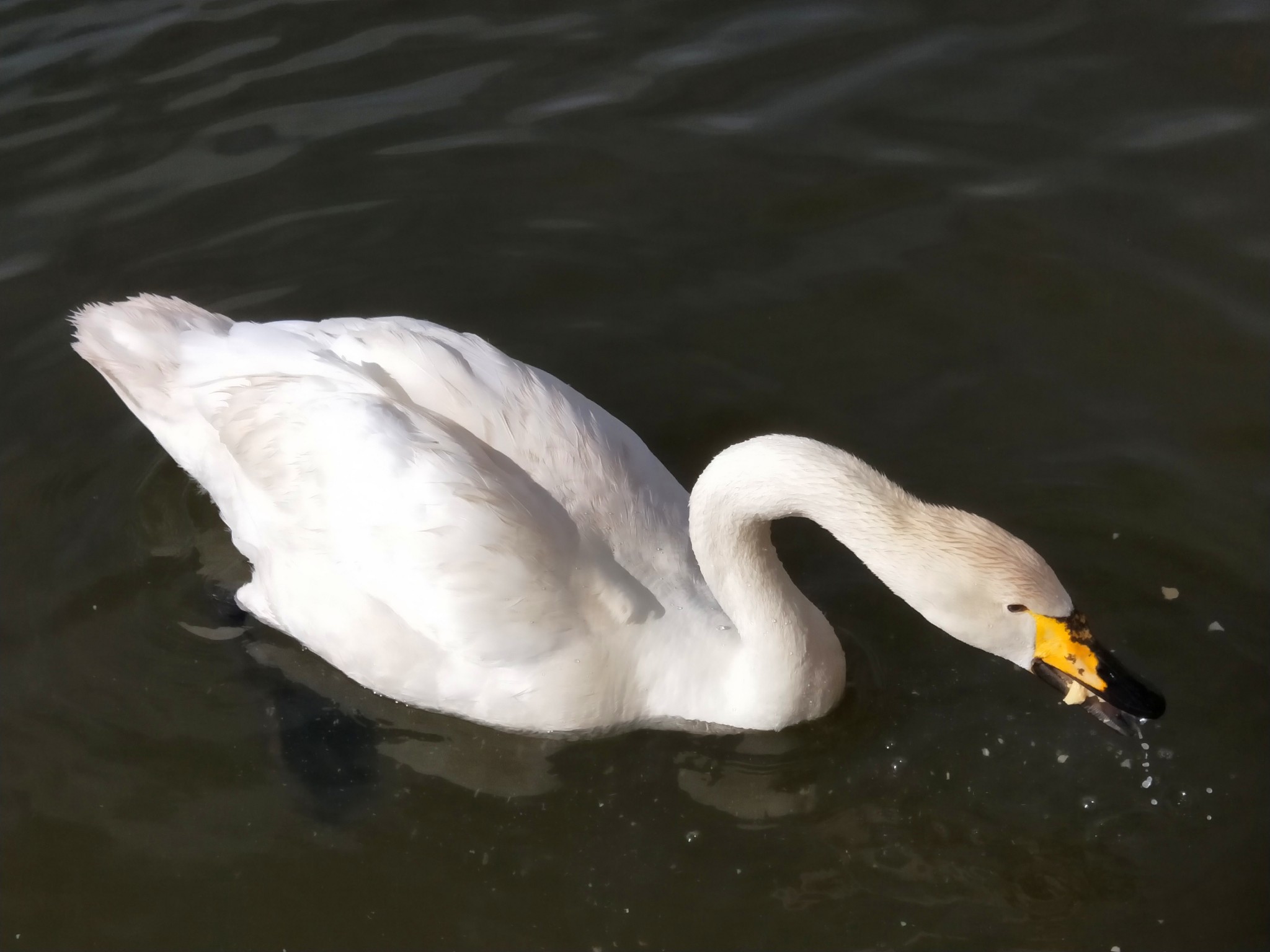 可爱的天鹅在水中自由嬉闹,生机勃勃