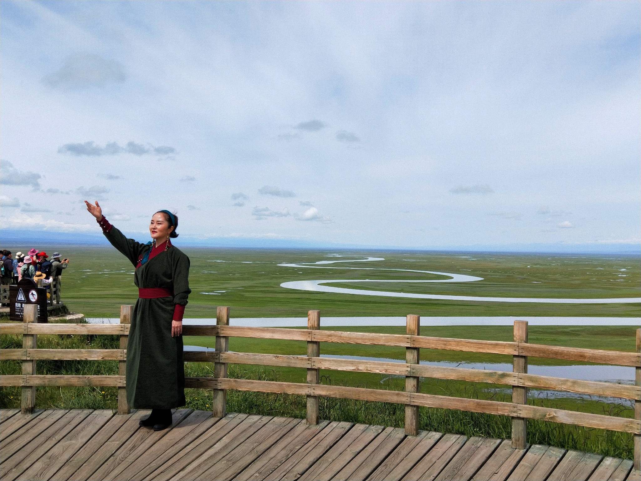 九曲十八弯是追逐光和影的摄影师们挚爱之地。当太阳落山时,湖心会出现九个太阳,仿若九阳连珠,是难得的盛景。可惜那日我们离开草原时,时间尚早,未曾拍到此景,心感遗憾