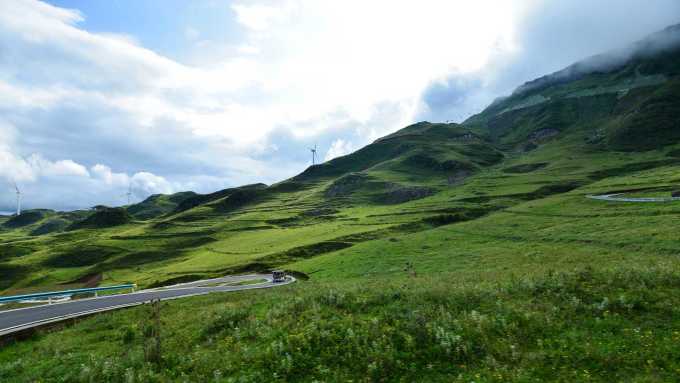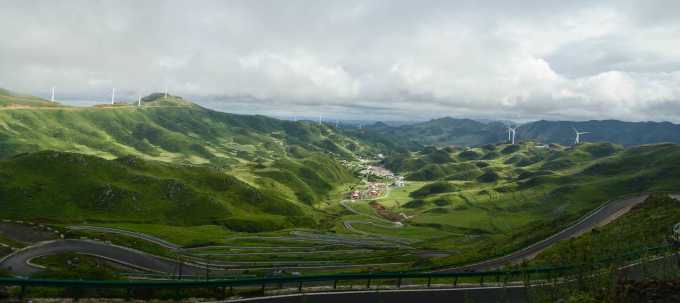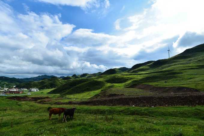 我们雨中一路驰骋,来到了盘县的乌蒙大草原,又名坡上草原。下了高速雨停了,太阳似乎也挣脱着欲要冒出乌云。