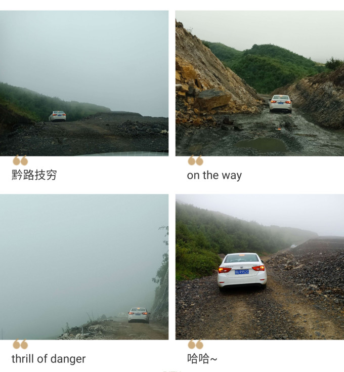本以为离开石林去六盘水的路会好走些,但走过之后才发现这比来时的路更恐怖,有些都四十五度的陡坡,开上去完全看不到路只看见天,山路又是那么的狭窄,根本无法会车,路边还没有护栏。但我们也算是深入了大山腹地,体验了地道的山里之情。