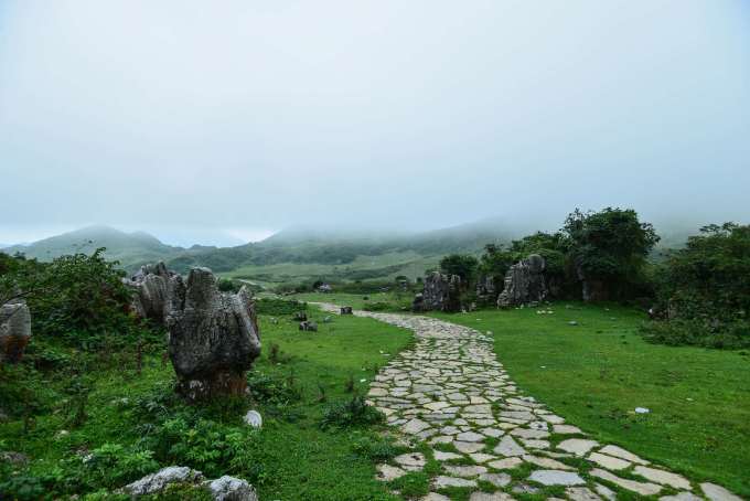 这是在赫章住店时,老板推荐的地方,景色很美还不要门票。天上石林在赫章返回六盘水的路上,这在省道212上还算好开,可拐上了去往石林的路,这真叫个难走啊,好多地方有塌方,好多地方在修路,外面还是雾蒙蒙的,山路难行啊,心里没底啊。好不容易遇到了对面来车,打听了一下路是通的就是不太好走而已,这才放心继续前行。这十几公里的山路足足开了两小时。
