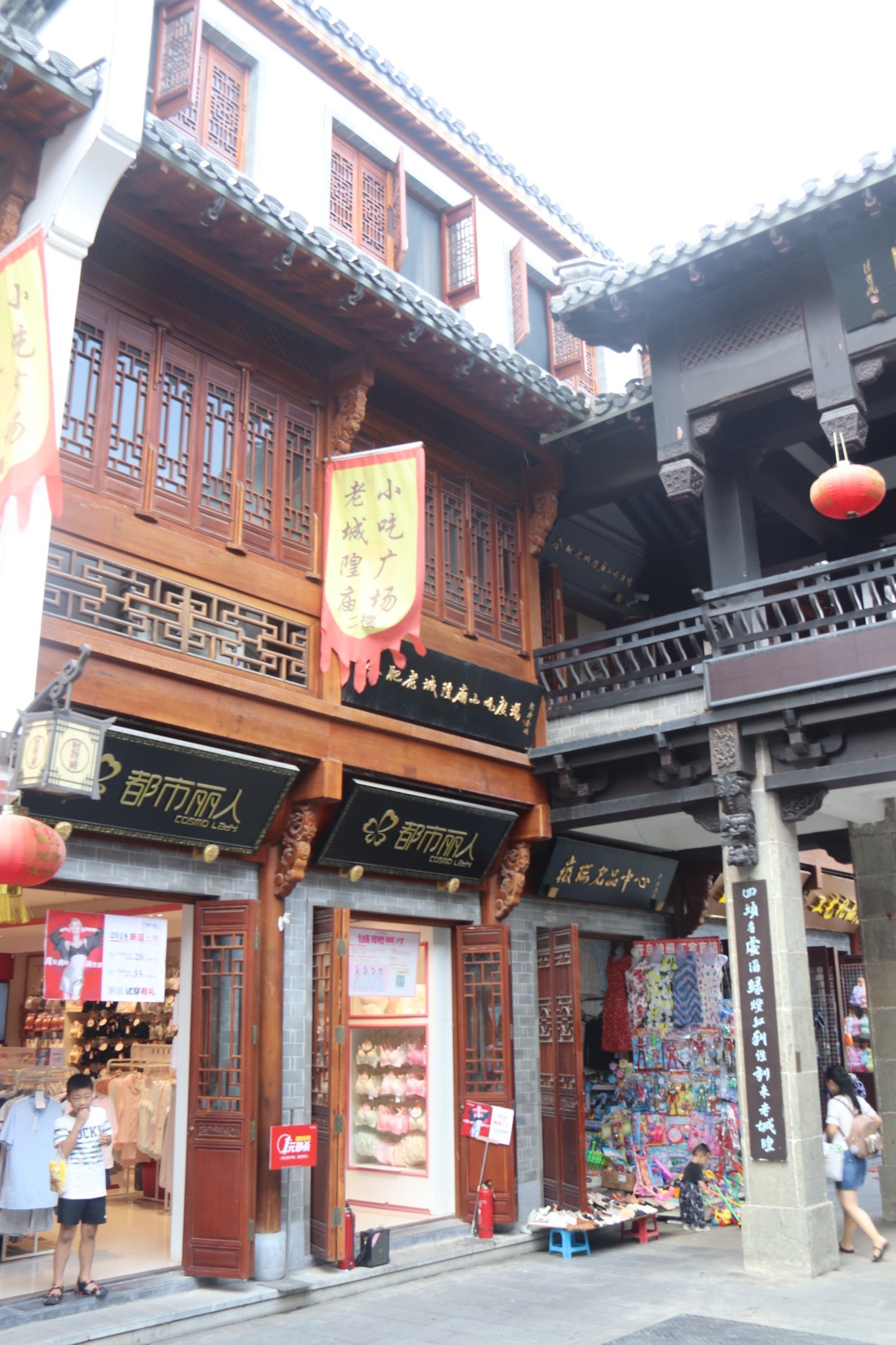 这些商业区的建筑都是现代建的,上面的砖雕木雕比起合肥明清古建差得十分远。