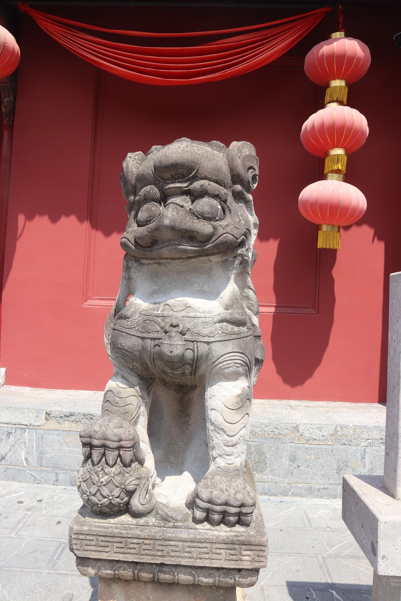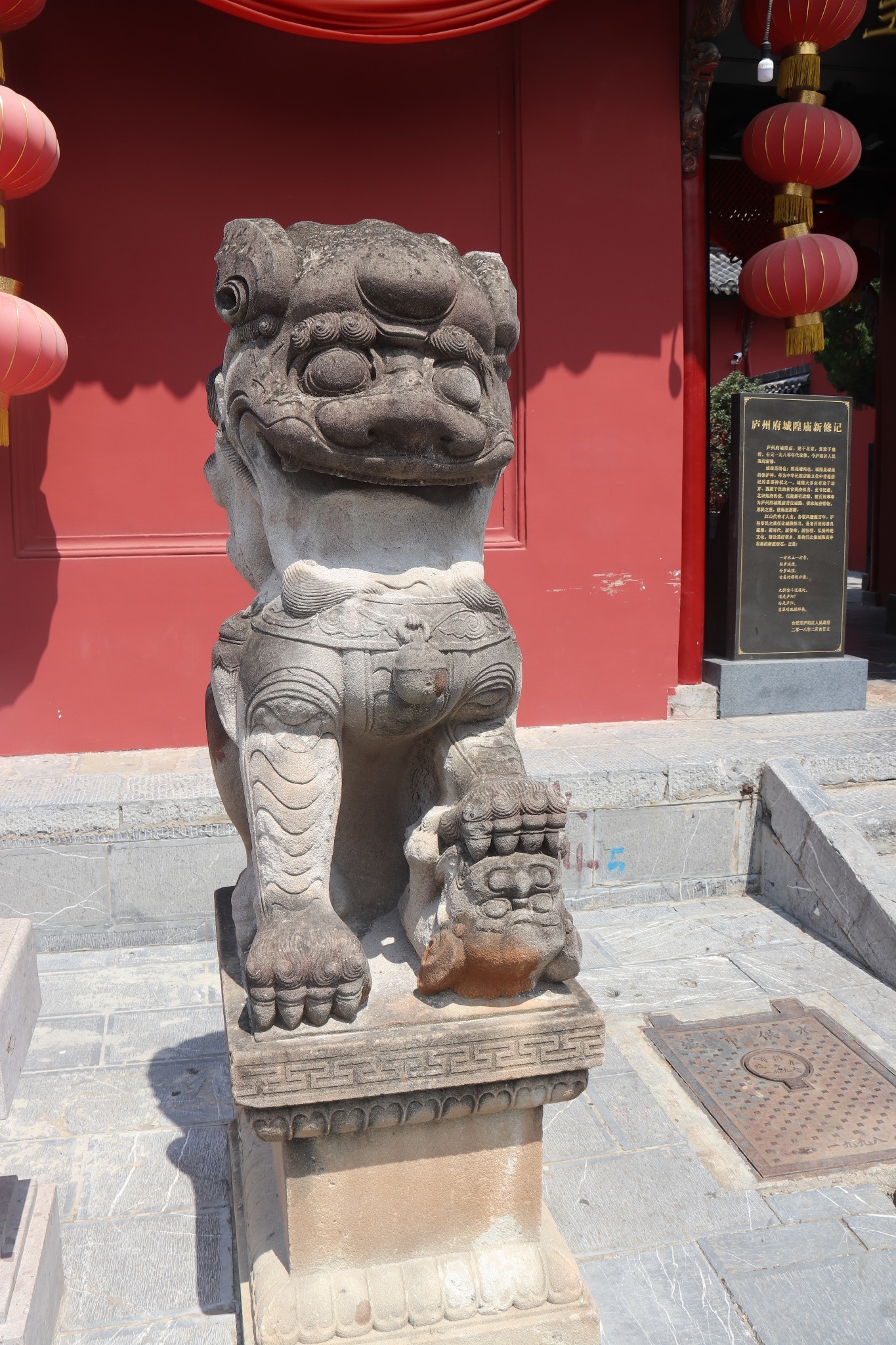 城隍庙的门口立有一对现代重建时造的石狮,在晚清民国时代,那座由李鹤章重建的城隍庙门口除了两侧的石狮之外,还有两根高大的插在石雕底座上的铁旗杆,铁旗杆上还有蟠龙雕刻装饰。