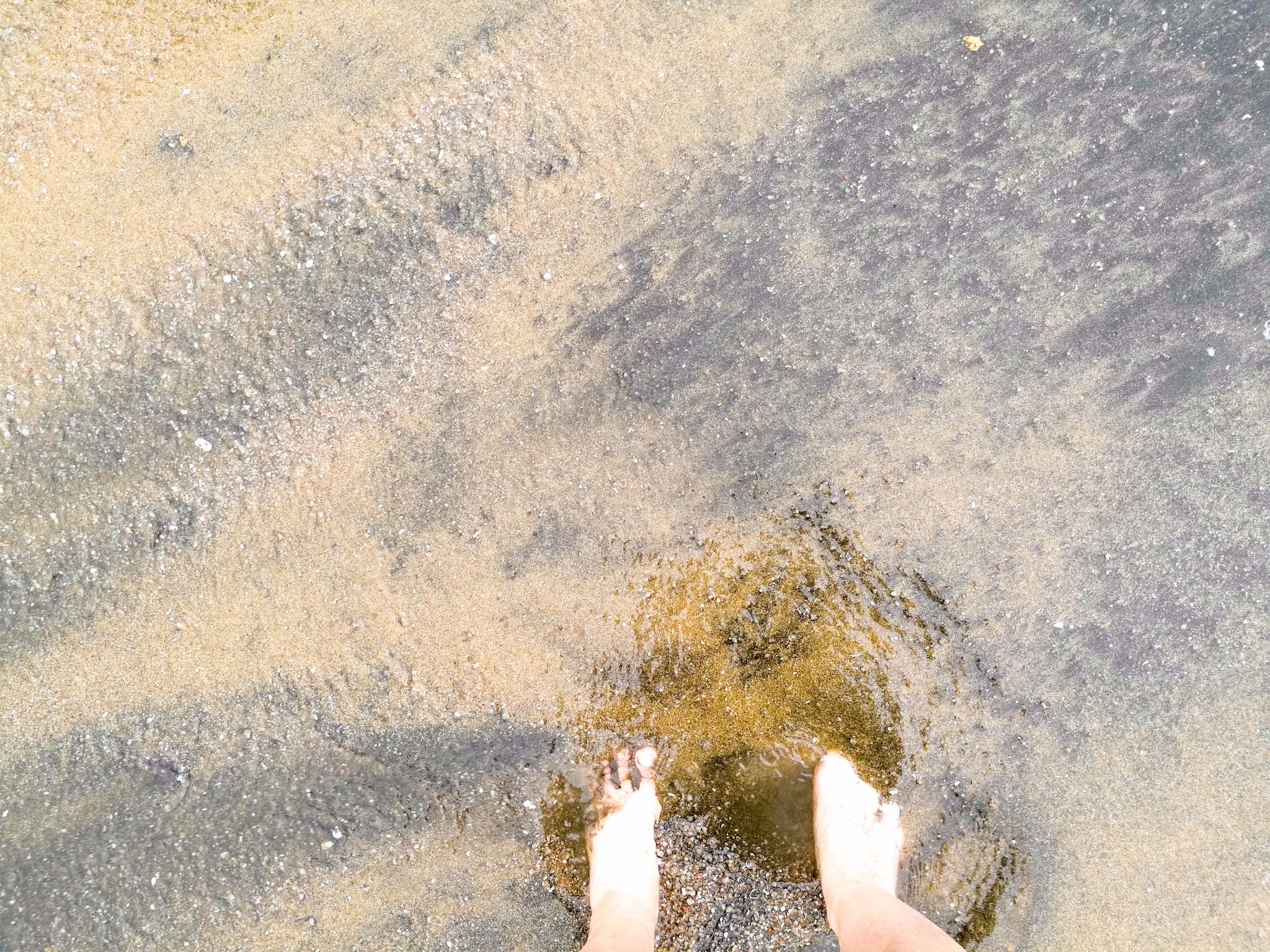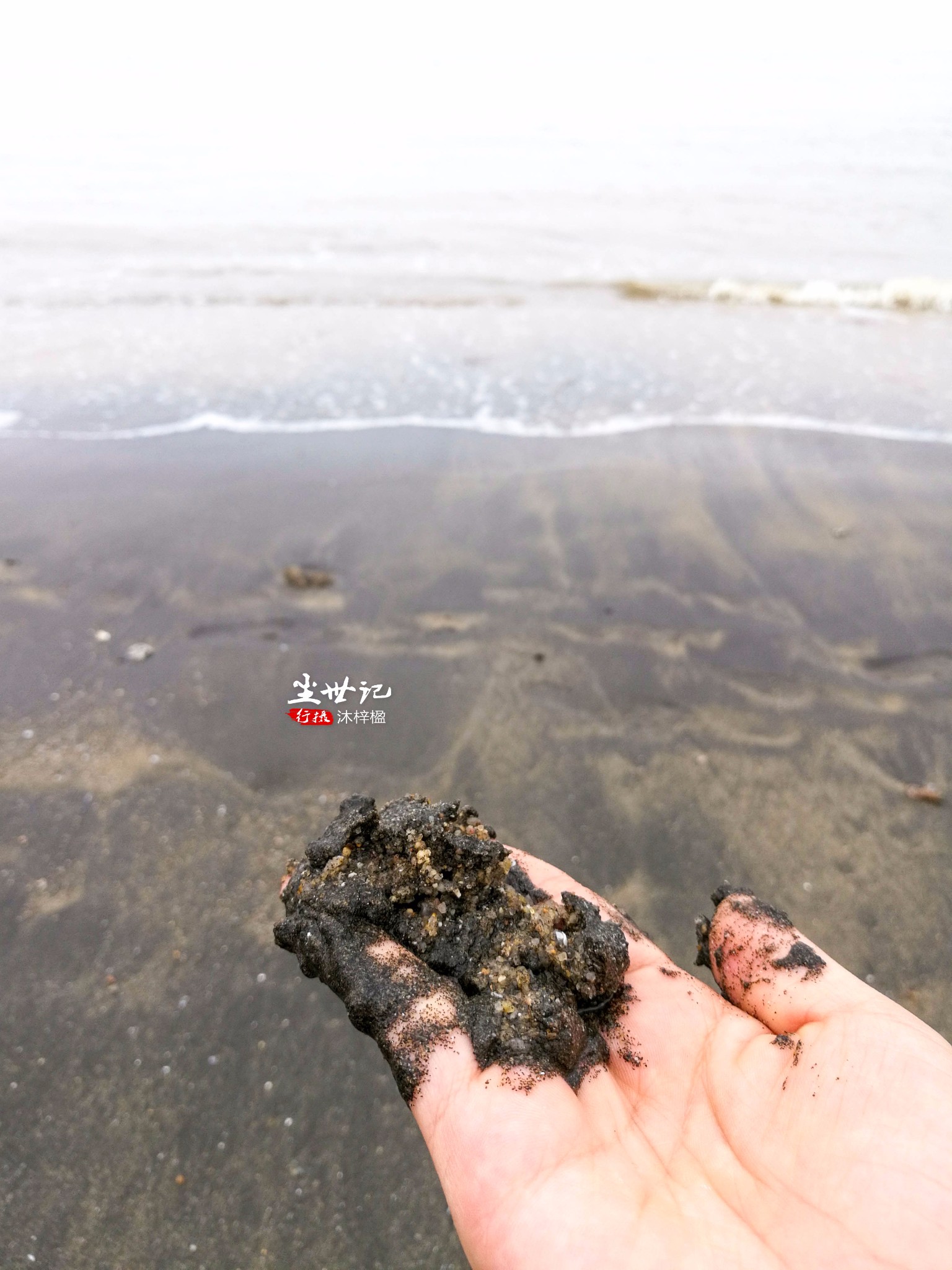 相对于一般的沙滩,黑沙滩就更加软些,站着站着就下陷了。