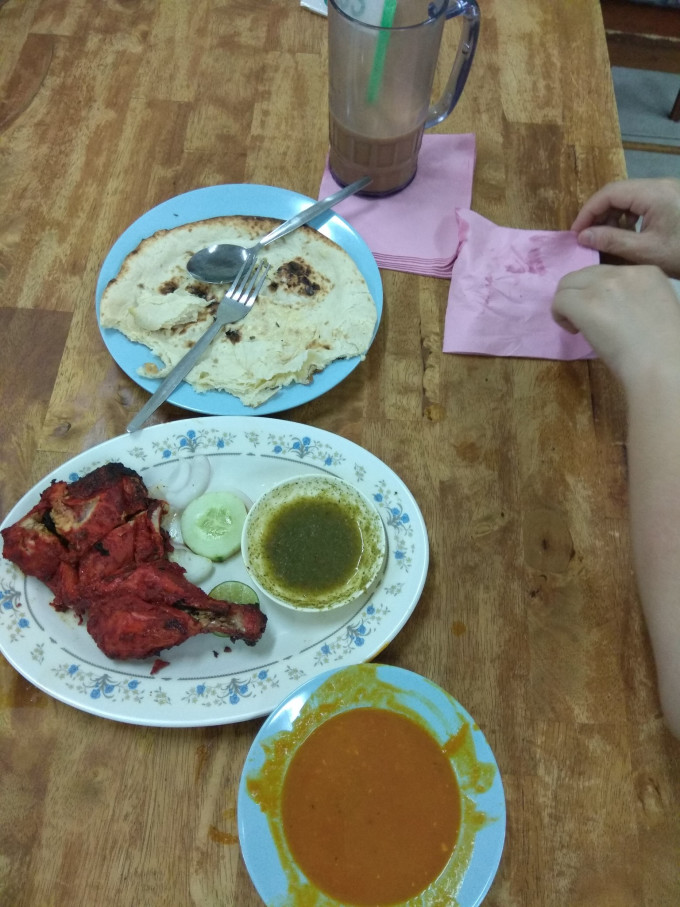 由于到的当天是马来国庆日,到处堵车,等司机来接我们,已是快8点,还好他推荐了一家很美味的巴基斯坦人开的饭店,人气很旺,多旺呢?那么说吧:等饭半小时,吃完5分钟。