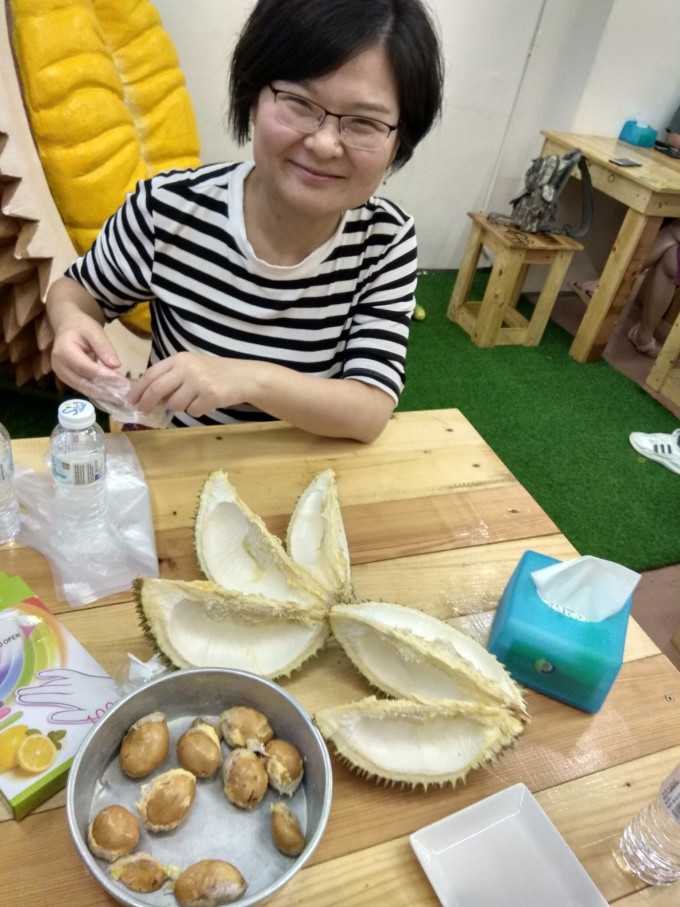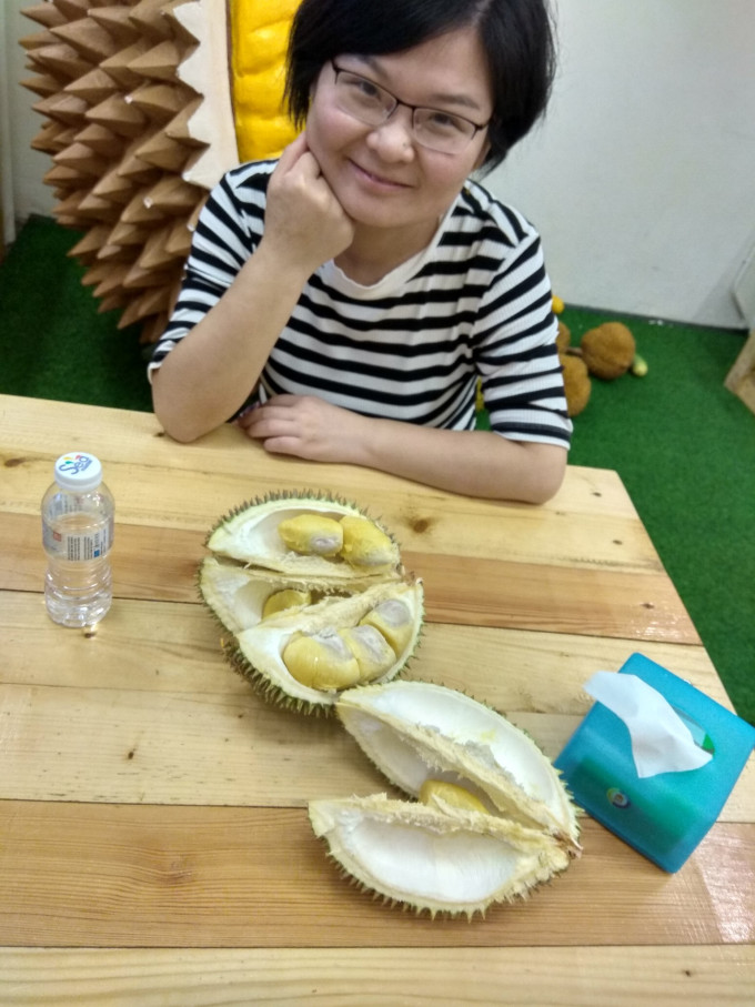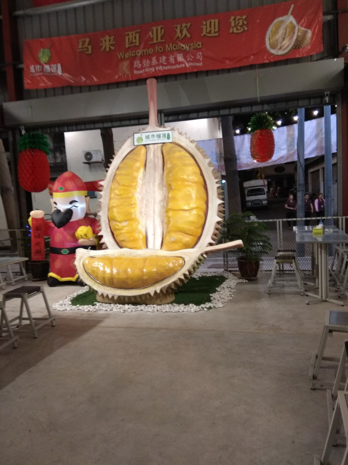 饭店距离还好,吃完不行回酒店1公里不到,夜晚走在城市的街道上,少了白天的缤纷与喧哗,多了些平和与宁静,没来得及感慨,到了鸡场街,在媳妇吃完一堆莫名其妙的小串串后,高潮来了——榴莲档。华人老板实在的我们都觉得不好意思,苏丹王开了两个都不好,又给开的第三个,其实前两个已经很好了,都只是有一瓣不饱满(他本人说是叫,不漂亮),这在国内根本卖家不理你,卖给你了,只要不坏,你就得认。和媳妇一个3斤的苏丹王吃的那个爽啊,才知道国内的金枕头,今后是不想吃了。
