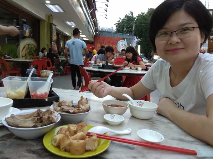 从柏威年去阿罗街真的 好近,半路抱着侥幸心理,拐弯去看看新峰肉骨茶,还行,人不多,直接吃饱(肉骨茶是此次列入可吃多次的事物之一)。以至于后面在阿罗街已经没有肚子吃小吃了。