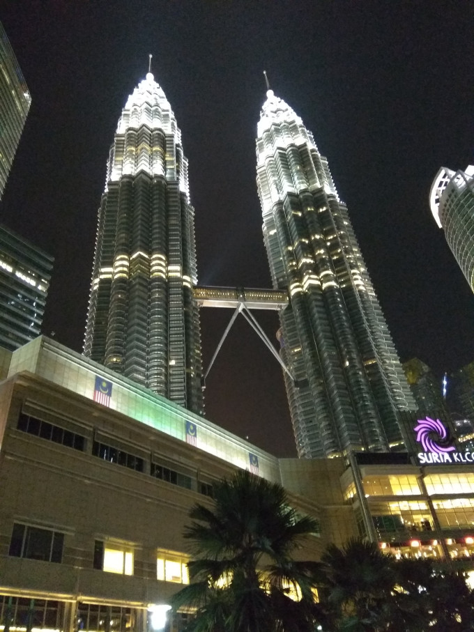 3斤多的猫山王,吃的很尽兴,真的很尽兴,吃完走回双子塔,沿途的城市里的夜景没太有什么看头透,不过他通向双子塔的空中走廊很有特色,避免了地面交通的拥堵,确实值得赞的设计。双子塔的夜景,果然想把人拍里面很难,拍出来也不好看,好歹来了,也得拍拍不是。