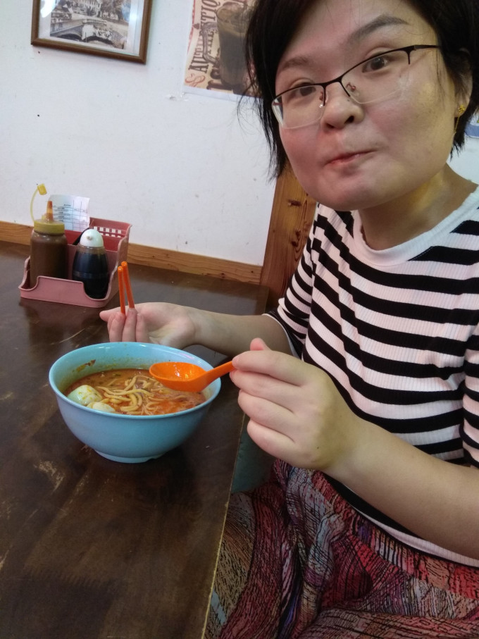 酒店(其实基本可叫公寓旅馆)入住放完东西,赶紧去网红店大宝小食吃叻沙,娘来,趟趟的人,很多人就直接买了站那吃了。其实,隔壁有个一模一样的卖叻沙等食物的,也好多当地人在吃,我们又不挑食,在这吃了呗,叻沙也才好。
