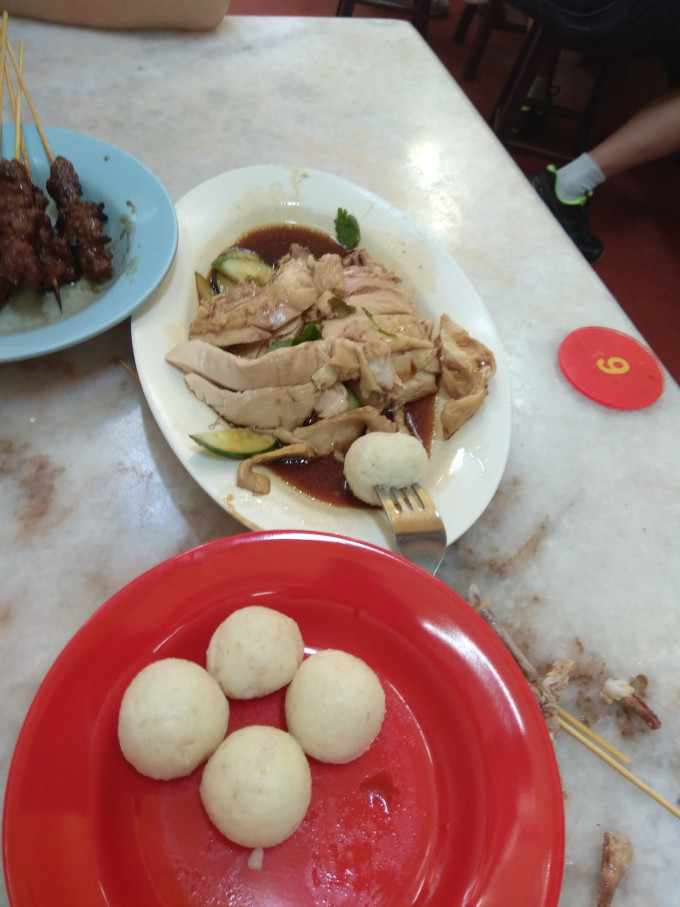 这一碗叻沙,肯定只是垫垫肚子,可是每一家饭店都是乌央乌央的人,还好,古城鸡饭,人家分店多,在其中一家,要不赶紧拍照,风卷残云的得连底都不见了。