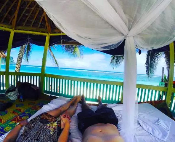 又或者是躺在萨摩亚沙滩边上伫立着的,叫做Fala的特色木质凉亭里。Fale构造很有意思,只有房顶和柱子,没有墙, 风从四面灌入,非常凉快。