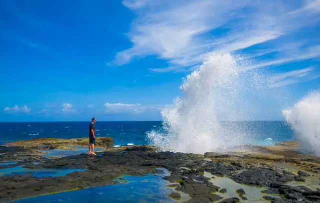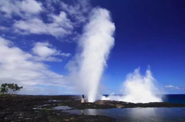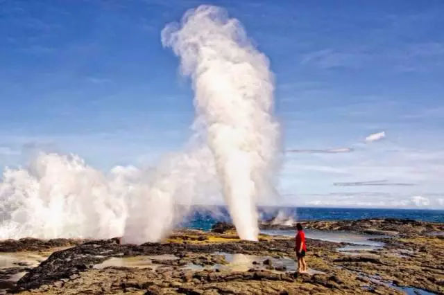 除了海岛标配的海滩海水,萨摩亚还有自己独特的景色,Alofaaga风洞就是其中一个。这个大自然的排气孔是由火山爆发形成的,每当海浪喷进溶洞里,就会形成一注冲天的水花,威力与效果震撼人心。
