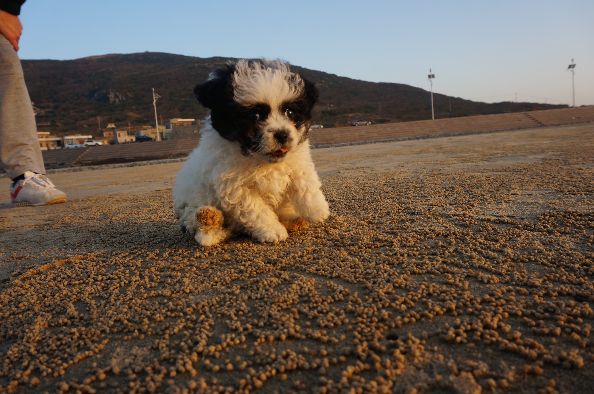 哈喽,大家好,我是小卷毛,我一只狗。听说平潭的长江澳沙滩有无敌的海景还有棒棒的日落我就替大家踩踩点,这个地方真的很漂亮,就跟我一样的可爱日落美景100分!我也可爱100分!沿着环岛东路路向北一路直行,看到大风车就到了,不用导航,我主人是个路痴都能找到住在北港的客人那就更方便了,过来15分钟就到了 沿着最美环岛路开,没有开车的伙伴你们就打的就可以了,最好留下司机的电话,回来的时候可以让他载回来,要不然可能要留宿长江澳了~你们下个景点先去哪里?我再帮你们踩踩点~