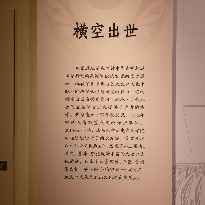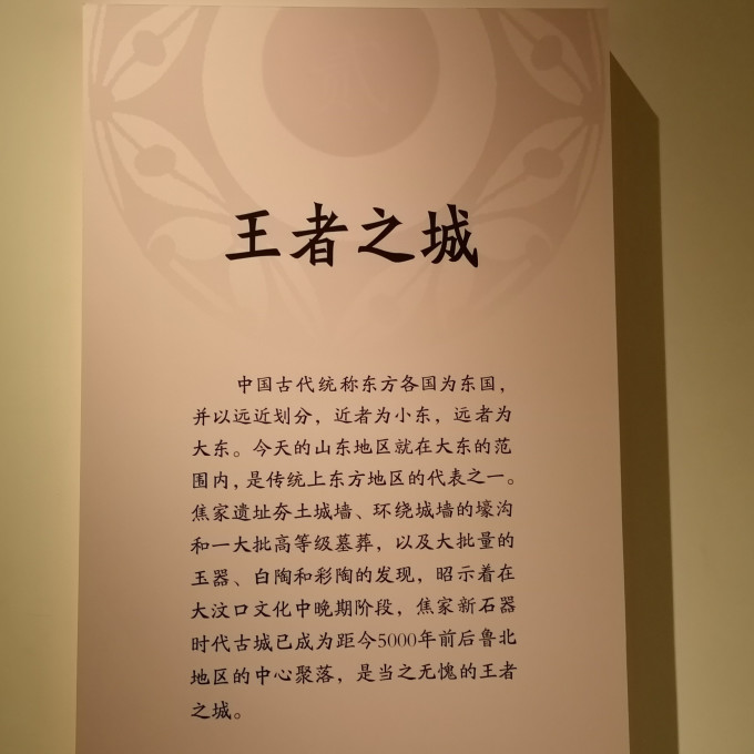 “礼出东方”展览,由中国国家博物馆联合山东大学、山东省文物局及济南人民政府联合主办,主要是焦家新石器时代遗址,这是2017年中国十大考古发现之一。