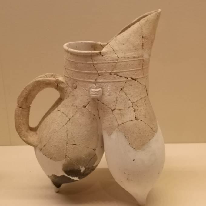 白陶鬶,龙山文化,距今约4600年--4000年,山东潍坊白浪河出土。