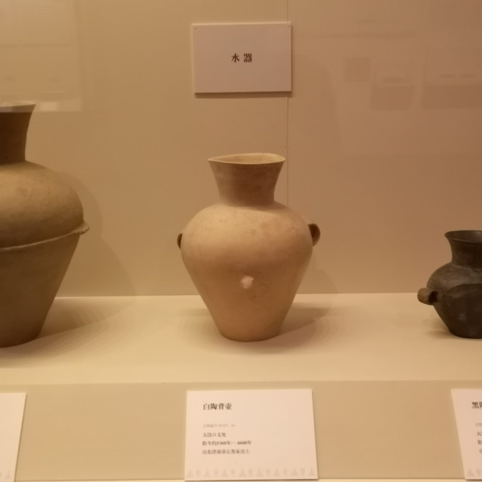 白陶背壶,大汶口文化,距今约5300年--4600年,山东济南章丘焦家出土。