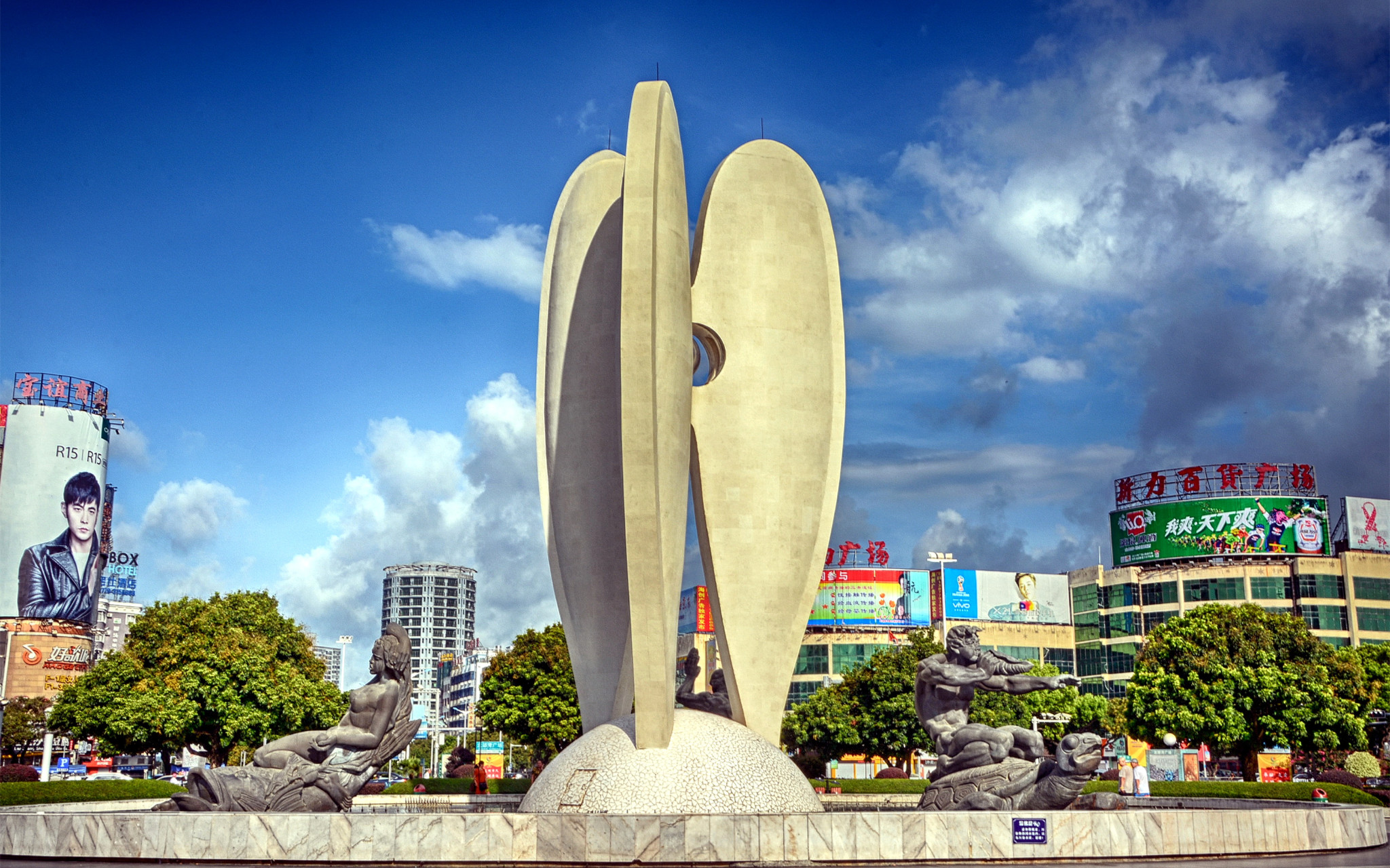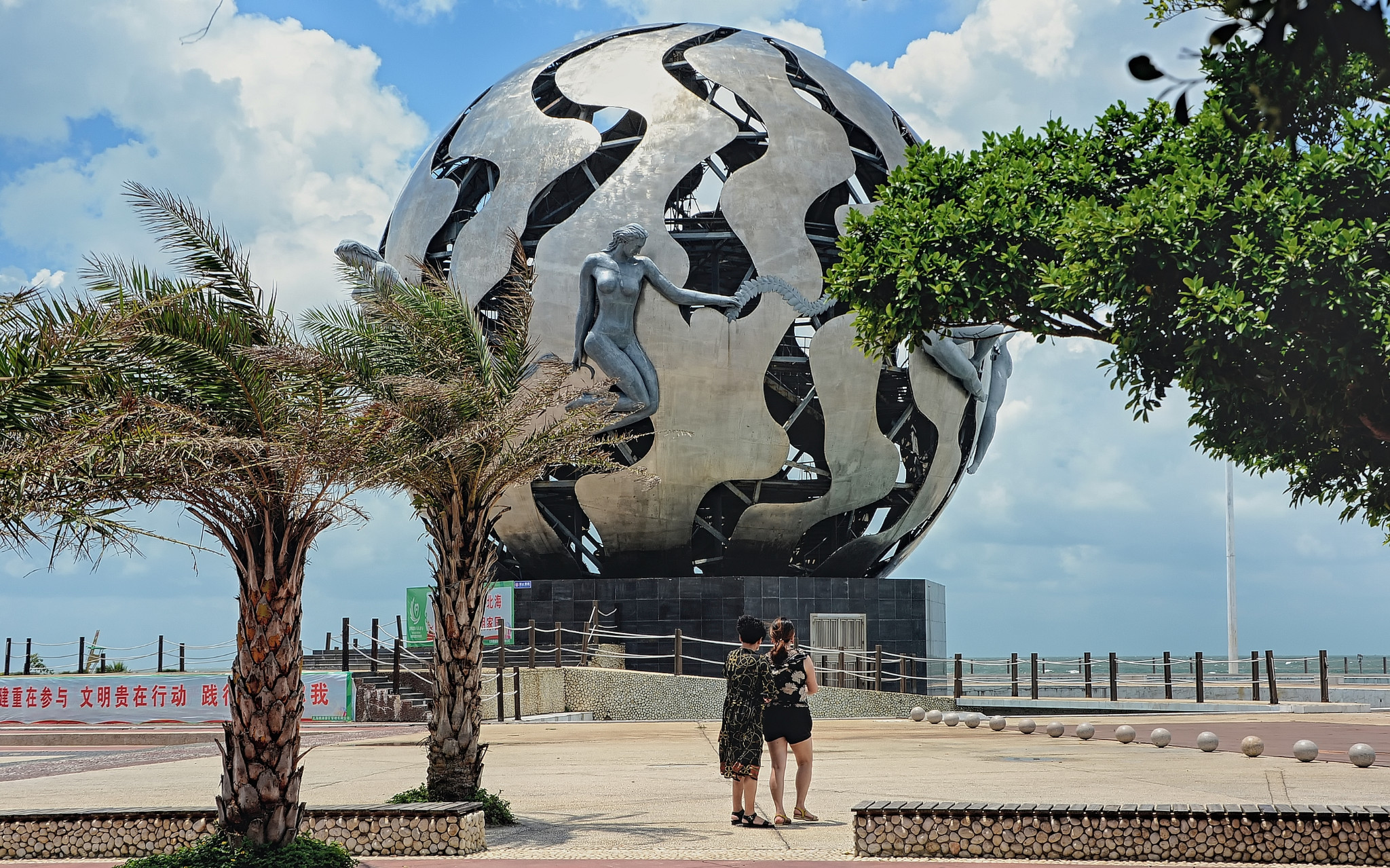 广场北侧建成的“南珠魂”雕塑,据说是北海市的标志象征。