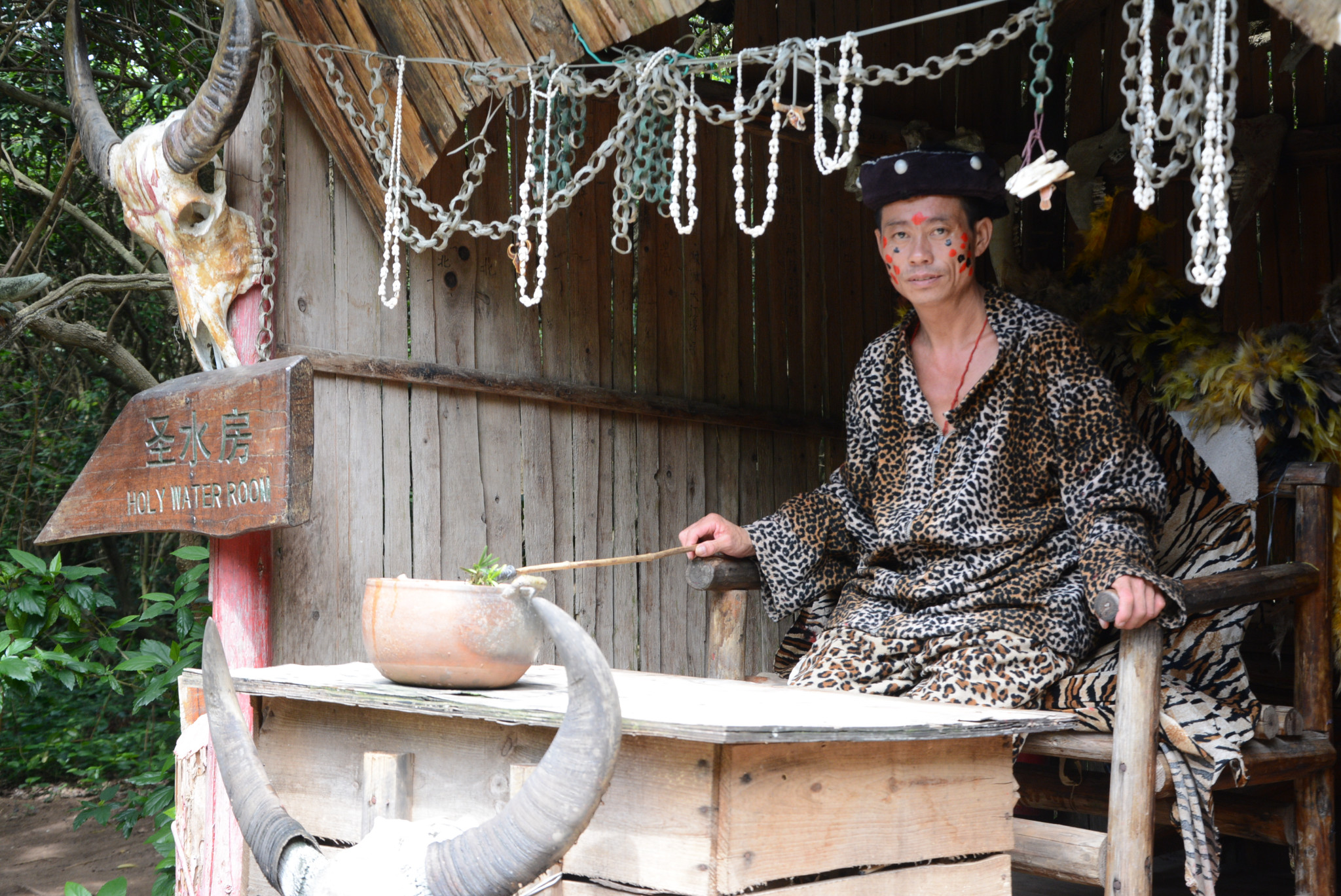 这位法师为好奇的游客撒上几滴圣水。。。