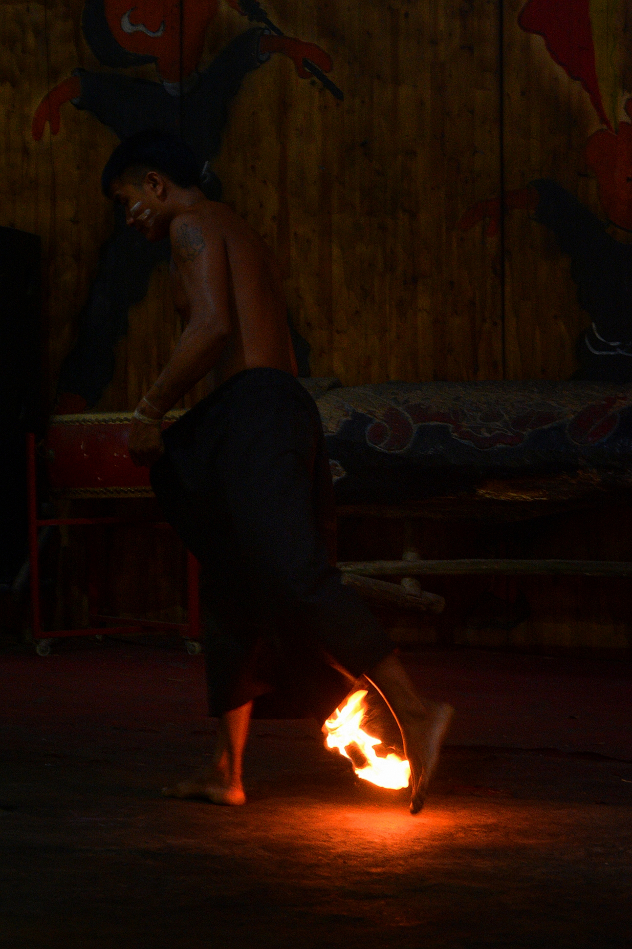 布朗族人的“舔火炭”、