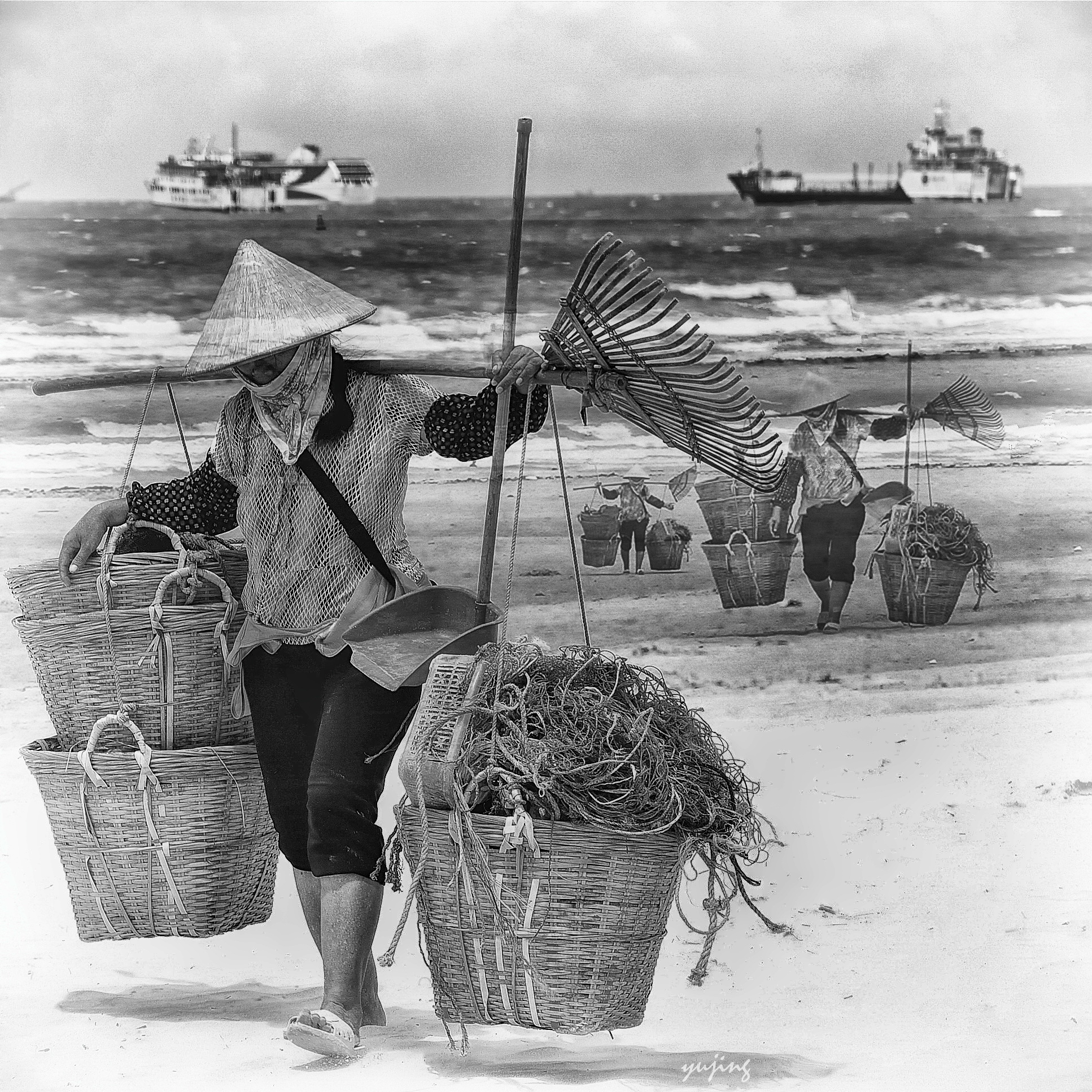 赶海的渔女。(图片精心处理过)