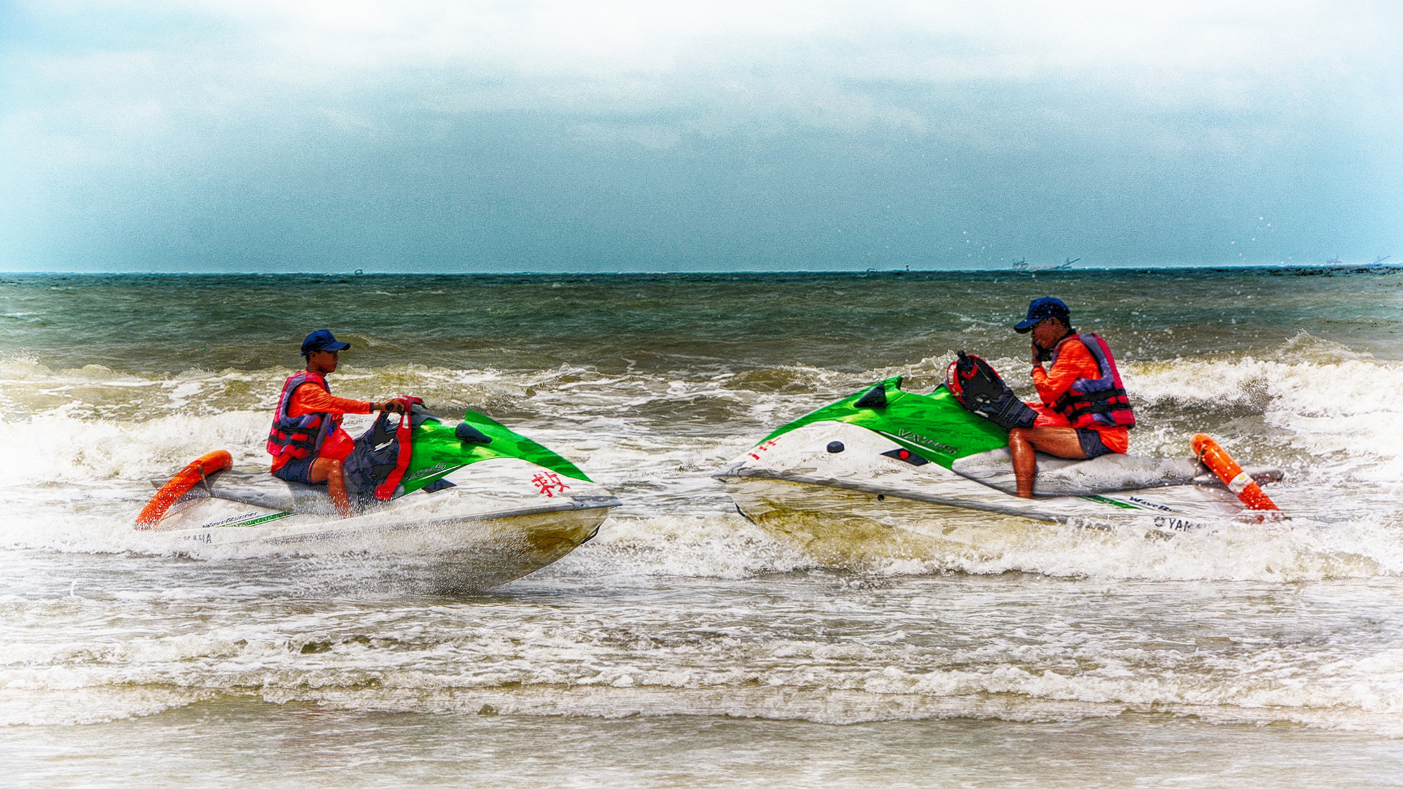 骑着水上摩托的沙滩救生员。。。兼职赚点钱。