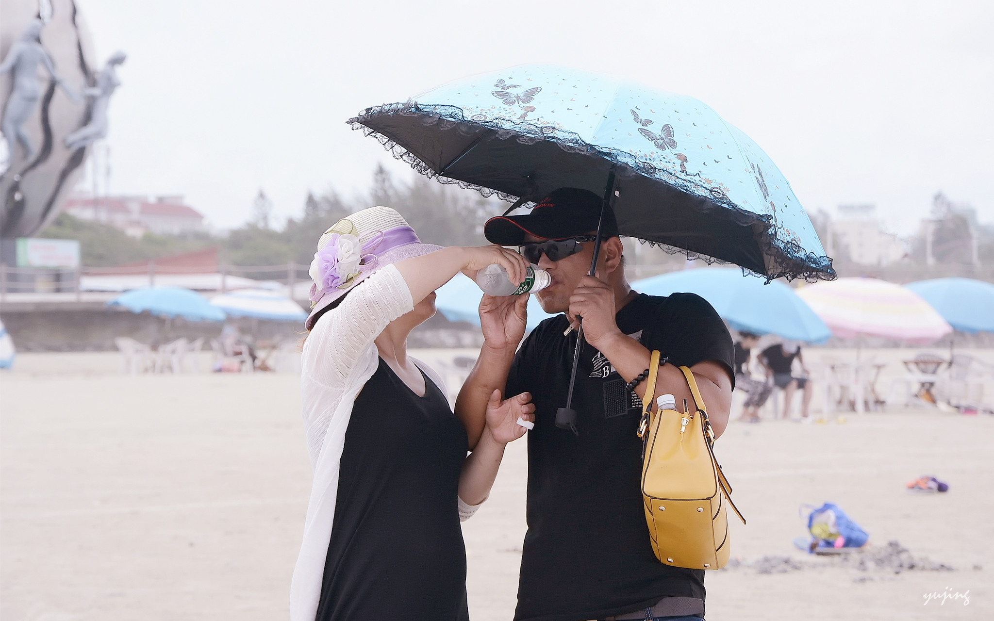 偶遇到一对中年夫妻秀恩爱,抓拍下来。那把伞引起我的联想,符合拍摄主题。于是这幅图片就定名为《两只蝴蝶》。